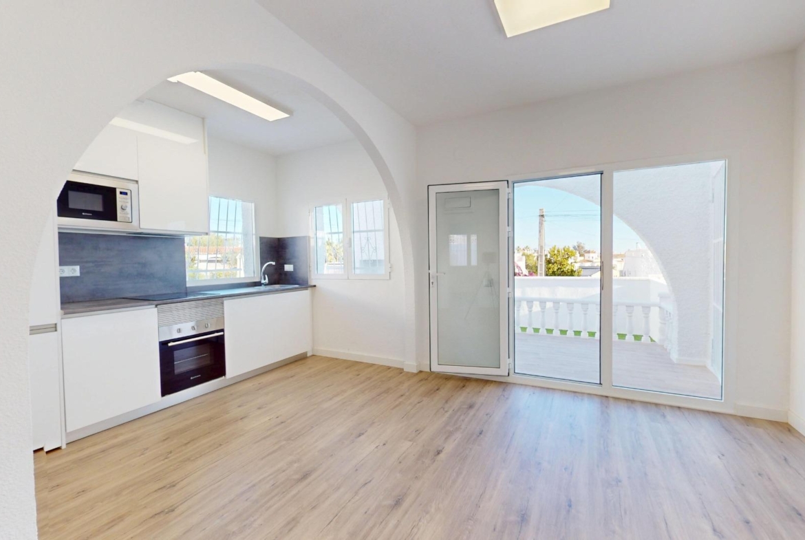 This charming, renovated bungalow in Blue Lagoon offers a Mediterranean lifestyle in one of the most peaceful and established areas of Orihuela Costa. With 58 m2 of living space, a private 48 m2 solarium, and a generous 202 m2 plot, it stands out for its spacious exterior and 147 m2 garden, perfect for enjoying the climate year-round.~~The fully renovated property features two bedrooms, a bathroom with a shower and screen, wood-effect laminate flooring, and a brand-new kitchen equipped with all appliances. Its solarium, with artificial grass and heather fencing, provides an ideal space to relax in complete privacy. Furthermore, the ample plot allows the future owner to install a private swimming pool if desired (at their own expense).~~The location is unbeatable: just minutes from the El Limonar international school, several golf courses, the Villamartín shopping center, the Marimba Blue complex (with swimming pool, restaurant and 3 paddle tennis courts) and the well-known Greenlands Blue Lagoon, with its spectacular mini-golf and palapa-shaped restaurant.