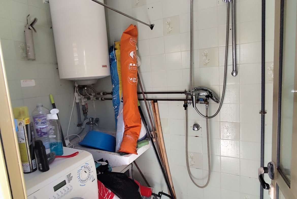 Vonios kambaryje yra praktiškas dušas – puikiai tinka nusiprausti po dienos paplūdimyje. Atviro plano virtuvė, nors ir kompaktiška, yra kruopščiai suprojektuota taip, kad maksimaliai išnaudotų erdvę, derindama funkcionalumą su jaukiu žavesiu. Tai puiki vieta ruošti maistą po saulėtos popietės.