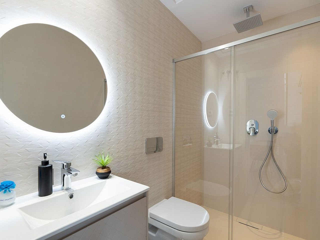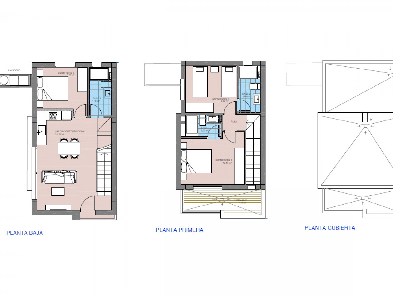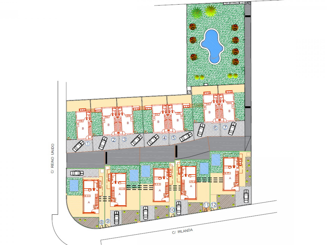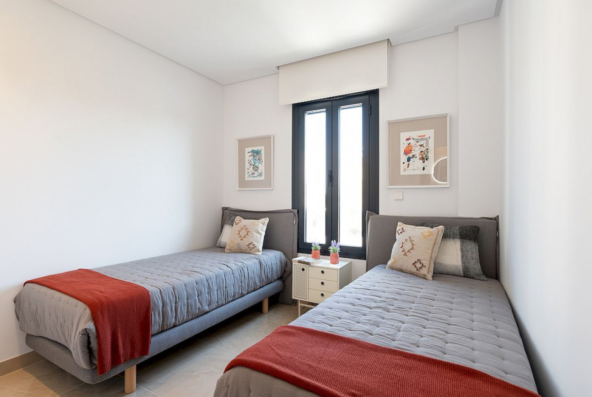 Šiuose dviejų aukštų namuose yra trys miegamieji (pagrindinis miegamasis turi prieigą prie privačios terasos, visuose yra įmontuotos spintos), trys vonios kambariai, pilnai įrengta moderni virtuvė (įskaitant buitinius prietaisus) ir atviro plano svetainė/valgomasis, iš kurios patenkama į privatų sodą ir automobilių stovėjimo aikštelę.