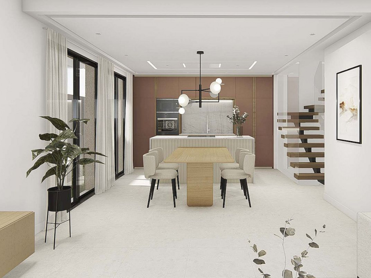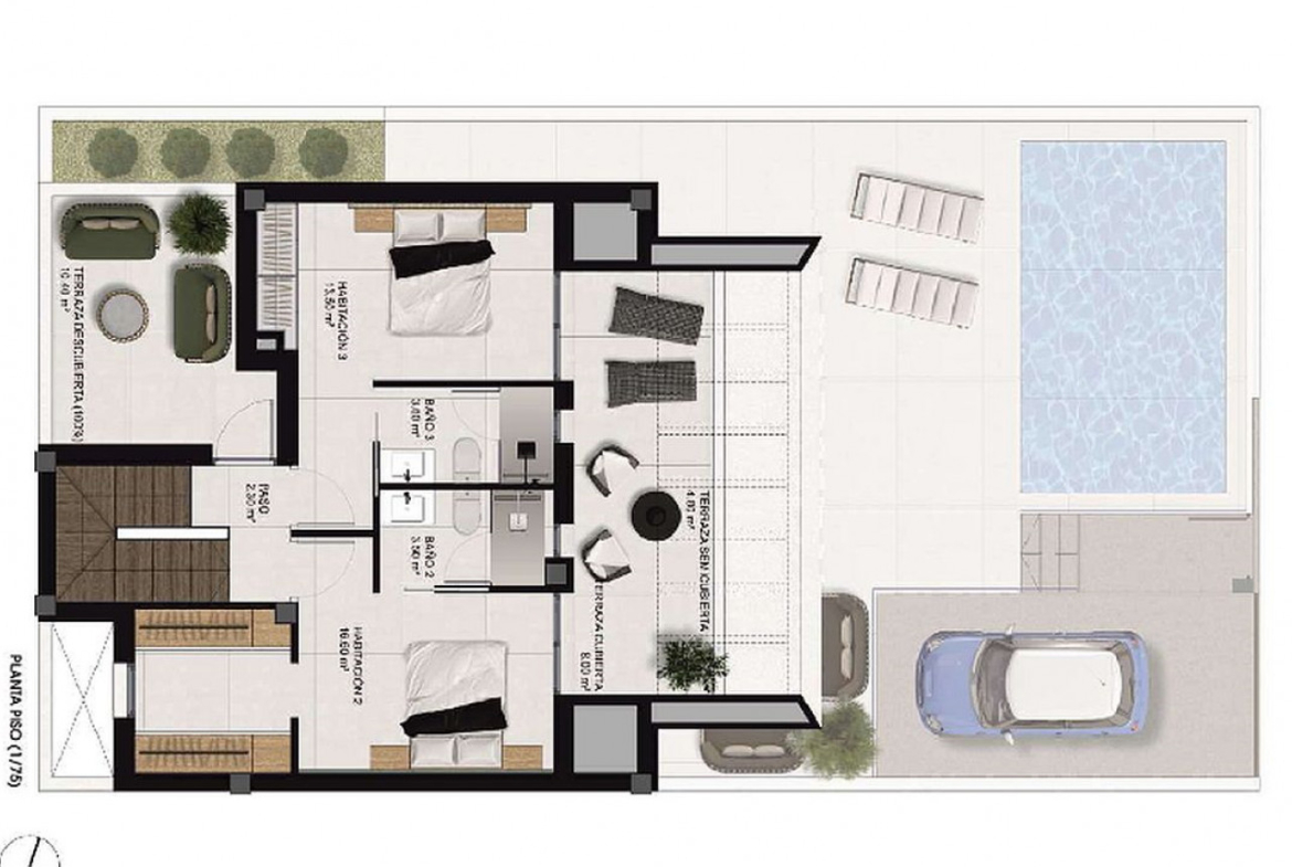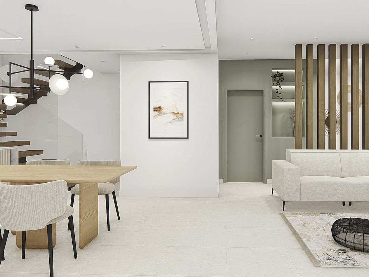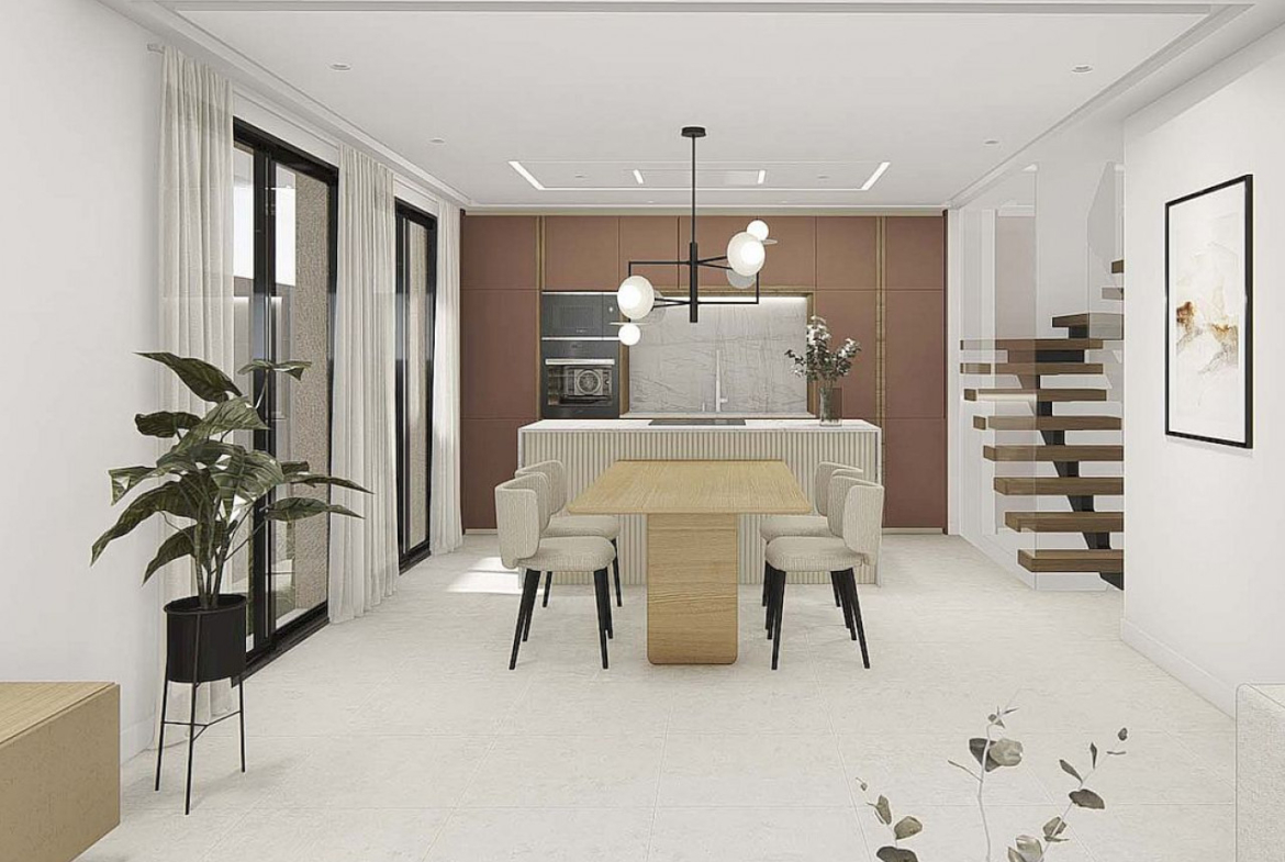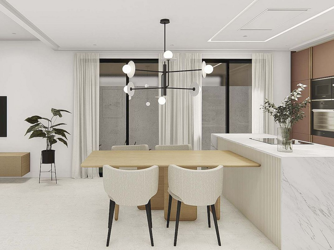 Būstą sudaro trys dviviečiai miegamieji, trys vonios kambariai, vienas tualetas, visiškai įrengta moderni virtuvė, atviro plano poilsio / valgomojo zona, iš kurios atsiveria privatus baseinas, ir kraštovaizdžio sodas, kuriame galėsite mėgautis Viduržemio jūros klimatu ištisus metus.