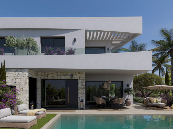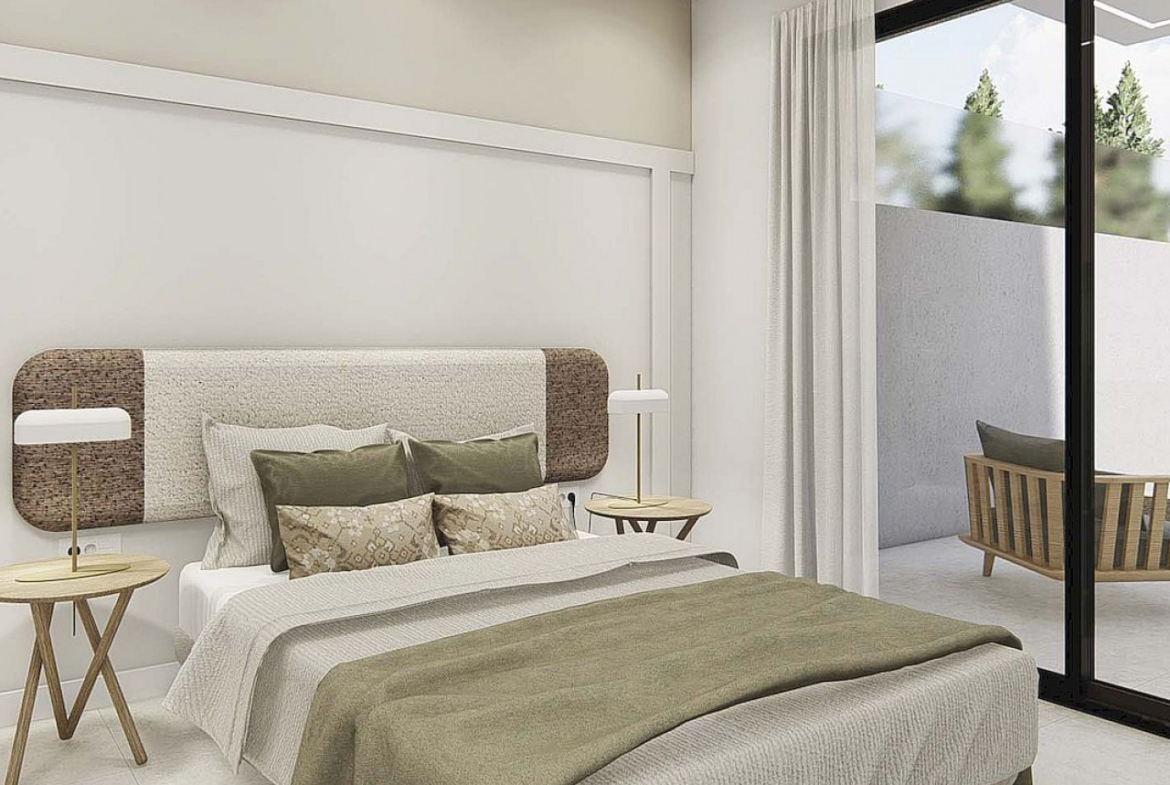 Naujas inovatyvių bungalų kompleksas su privačiu baseinu Dolores mieste, tipiškoje Ispanijos vietovėje į pietus nuo Alikantės.
