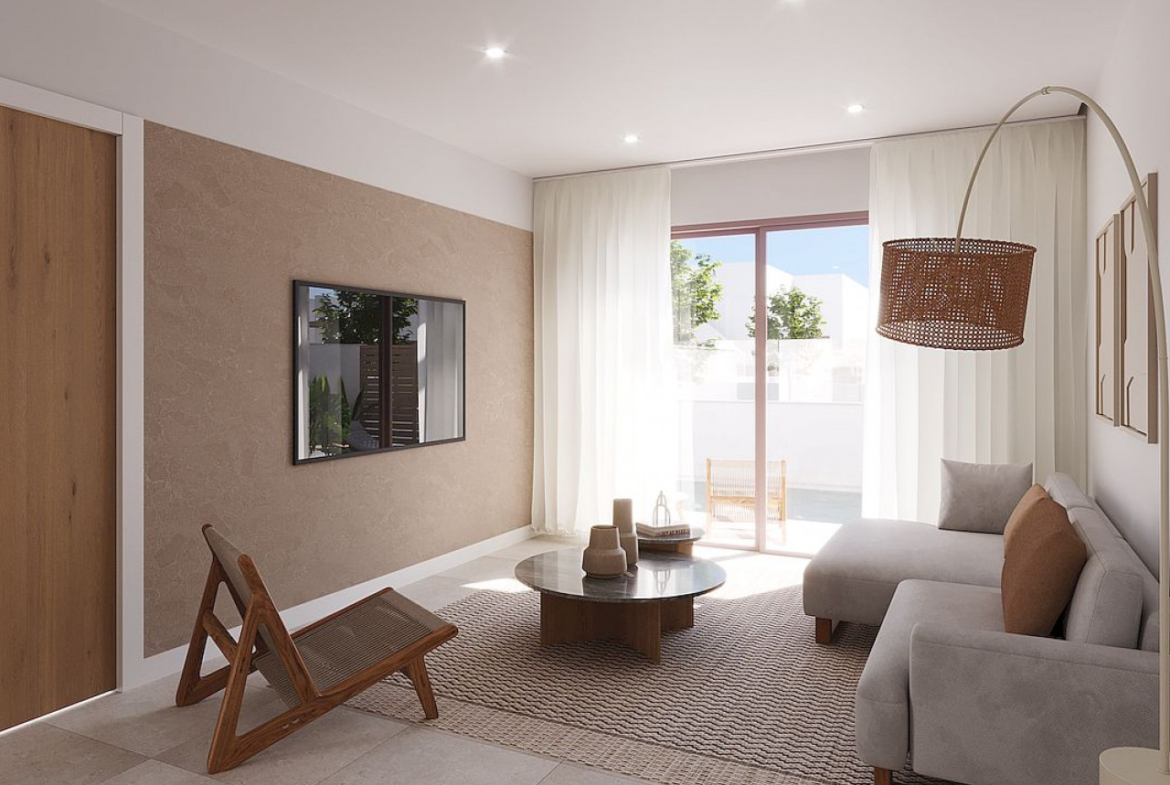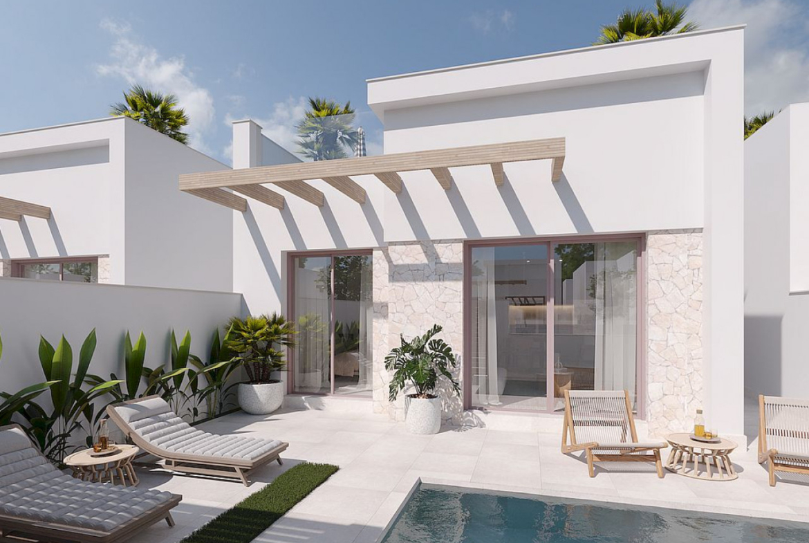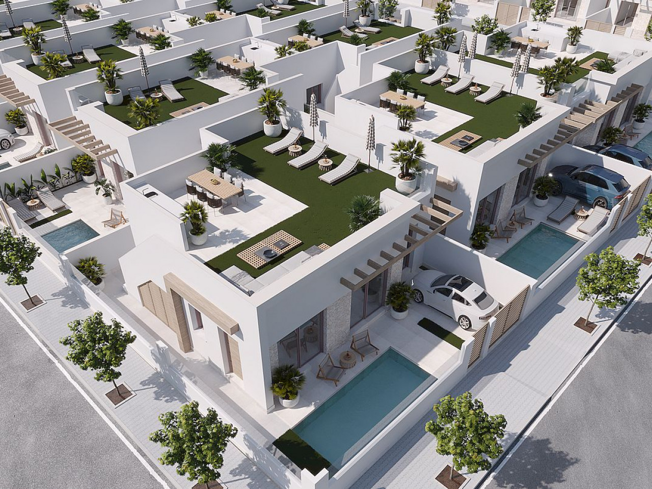 Naujas 11 išskirtinių sublokuotų vilų kompleksas ramiame Mursijos miestelyje Roldan (Torre Pacheco), žemės ūkio, ramybės, sveikos ir tipiškos ispaniškos aplinkos žemėje.