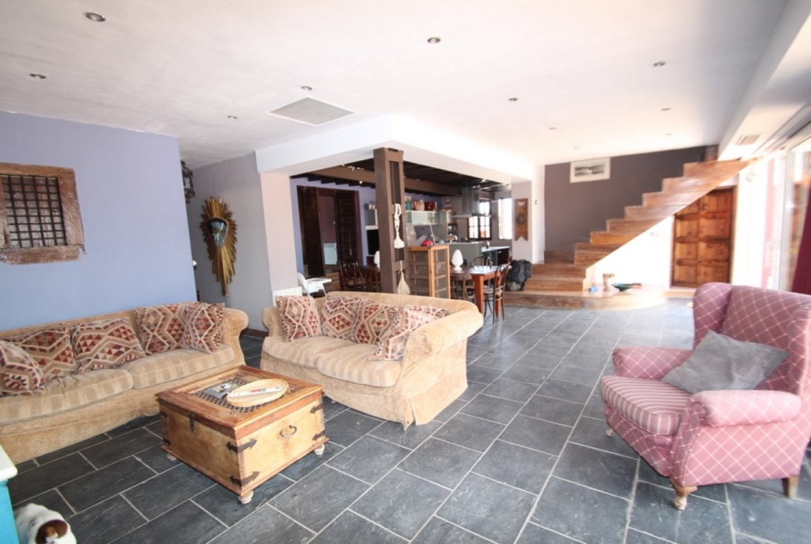 Opportunity to live in a unique place and with the possibility of having your own business.~ In front of the La Pedrera reservoir, we offer you an impressive independent Chalet on a plot of 13,700 meters and with a house of 320 meters with stunning views of the reservoir.~ This impressive house is distributed on two floors with two living rooms with fireplace, one of them very large of 85 m2, kitchen with its island, 4 bedrooms, 3 bathrooms, 1 toilet, solarium and a large porch overlooking the orange trees, large terrace with barbecue and pool of 15 x 7 m, facing the lake.~ There is possibility to expand the house on the top floor.~ The interior design has been made by Philip Pelleter, internationally recognized that appears in the book Interior Design Review.~ The house is sold fully furnished with antique furniture doors of India ….~