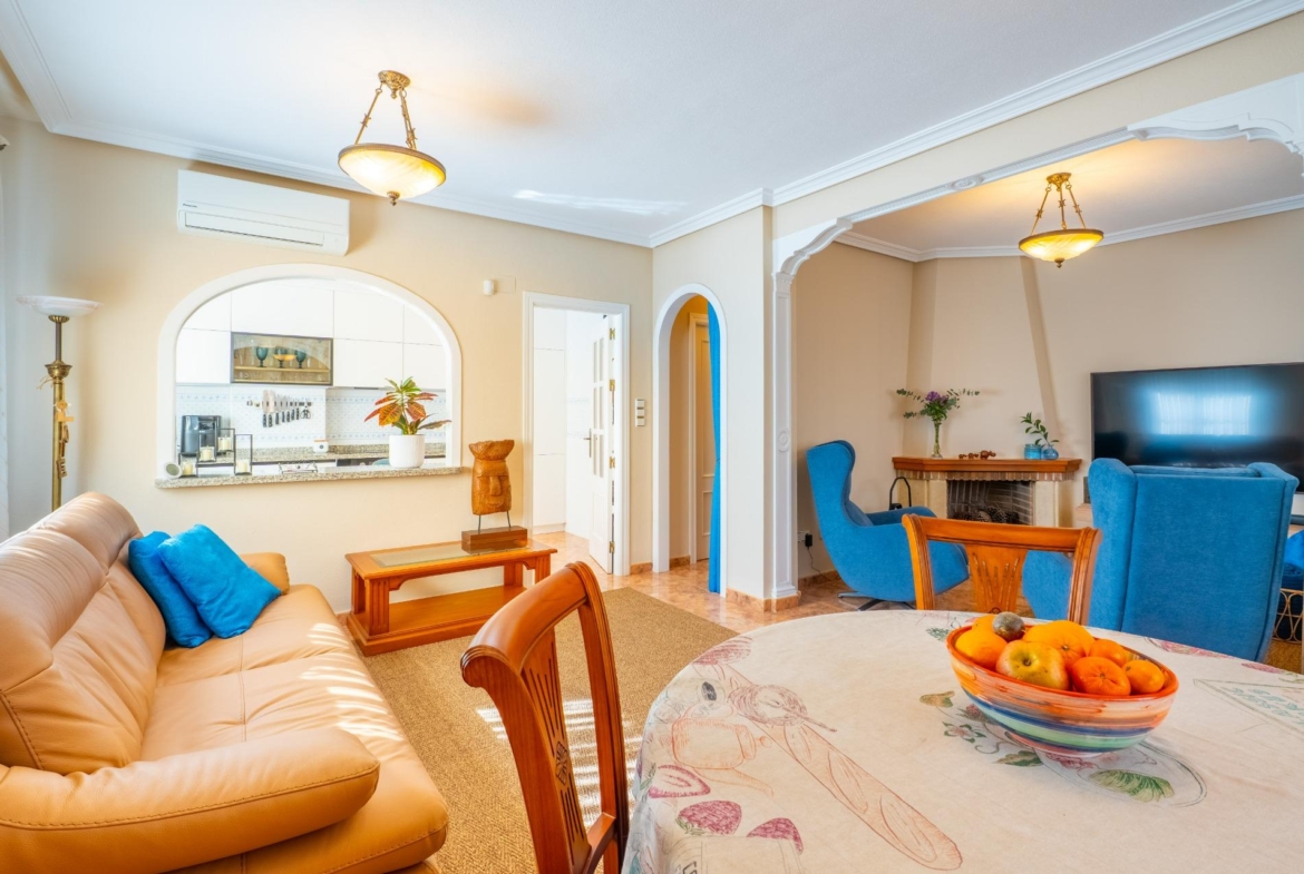 Orihuela Costa rajone, populiariame „Residencial Vista Azul“ komplekse, parduodamas jaukus ir modernus kotedžas. Tai puikus pasirinkimas tiek nuolatiniam gyvenimui, tiek investicijai vienoje geidžiamiausių Kosta Blankos vietų.