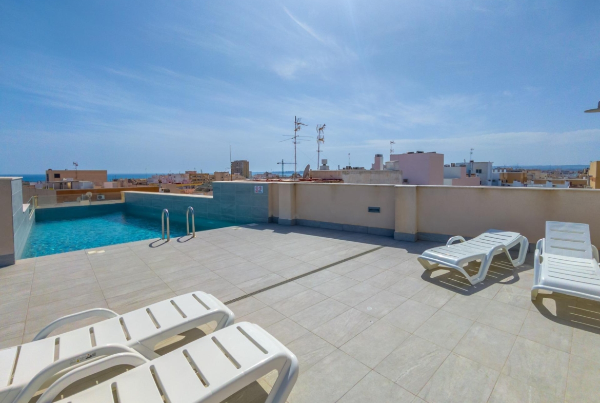 We present this modern apartment located in the center of Torrevieja, one of the most in-demand areas of the Costa Blanca. An ideal location to enjoy the Mediterranean climate, peace and quiet, and an active lifestyle all year round.~~The property stands out for its excellent layout and great natural light. It features a spacious living room with an open-plan kitchen and dining area, creating a modern and functional space. It also has a glazed terrace that brings in plenty of natural light, as well as a private storage room offering very useful extra space.~~The property offers 2 bedrooms and 2 full bathrooms, designed for comfort and practicality. It includes a garage parking space, providing security and convenience for your vehicle.~~Prime central location in Torrevieja, just 300 m from Playa del Cura and a short walk from the promenade. Surrounded by all services, restaurants, and leisure areas, with excellent connections. A lively area all year round, ideal both for permanent residence and investment. Everything is within a 5–10 minute walk.~~Torrevieja is a coastal city in constant growth, highly sought after both for holidays and long-term stays. In recent years, it has significantly improved its infrastructure, with new schools, sports facilities, and extensive residential developments. Its Mediterranean climate allows for year-round beach tourism.~~The property price does not include notary fees, registry fees, or applicable taxes, which may vary depending on the property price and current regulations in the Valencian Community.
