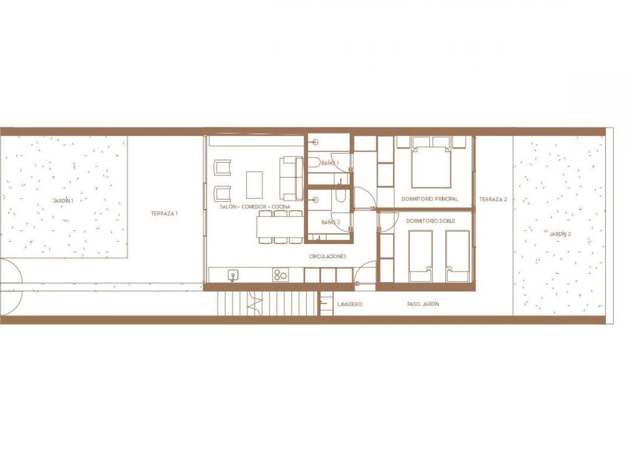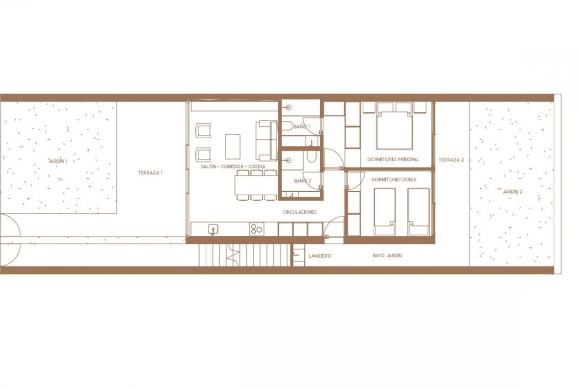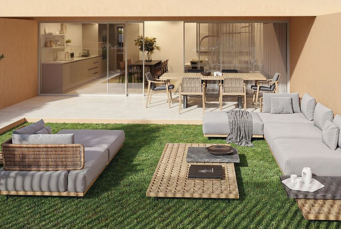 • Pirmo aukšto apartamentai: Pasižymi dviem privačiais sodais. Vienas jų orientuotas į išorinę komplekso pusę, kitas – į vidinę bendruomenės erdvę, užtikrinant skirtingas zonas poilsiui lauke.