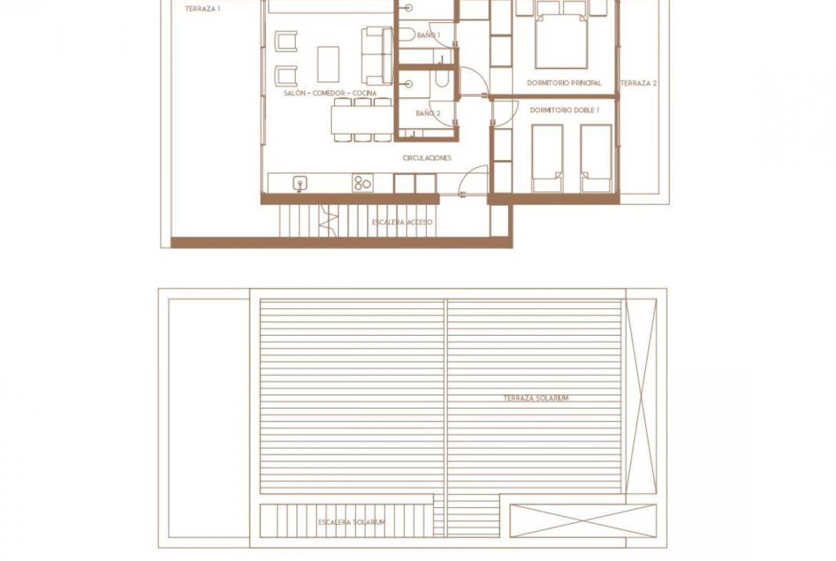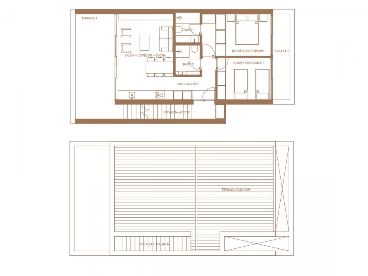 • Viršutinio aukšto apartamentai: Turi erdvią terasą ir privatų soliariumą, iš kurio atsiveria vaizdas į Laguna Rosa (Rožinę lagūną).