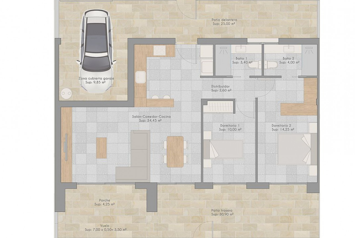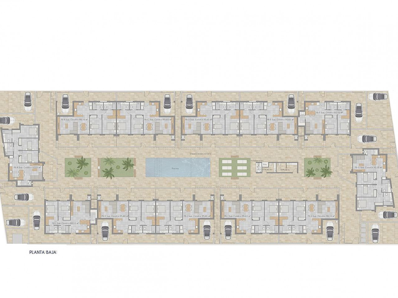 Torre Pacheco – tai miestas, kuriame dera ispaniškos tradicijos su modernia infrastruktūra, siūlantis platų paslaugų ir pramogų spektrą. Įsikūręs Torre Pacheco širdyje, šis kompleksas yra netoli būtiniausių patogumų, įskaitant prekybos centrus, parduotuves, barus ir restoranus. Gyvybingas miesto centras su žavinga ispaniška atmosfera yra pasiekiamas pėsčiomis. Paplūdimio mėgėjams nuostabus Mar Menor paplūdimys, kuriame gausu auksinio smėlio ir krištolo skaidrumo vandens, yra vos už 10 minučių kelio automobiliu. Golfo aikštynai yra visai netoli, todėl tai ideali vieta golfo entuziastams. Mursijos tarptautinis oro uostas yra už 20 km (maždaug 20 minučių automobiliu).