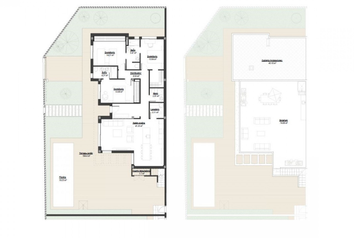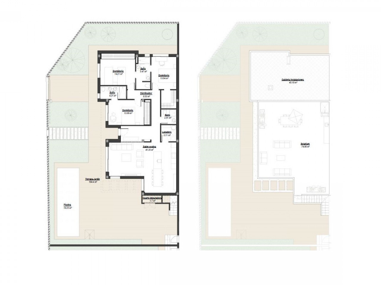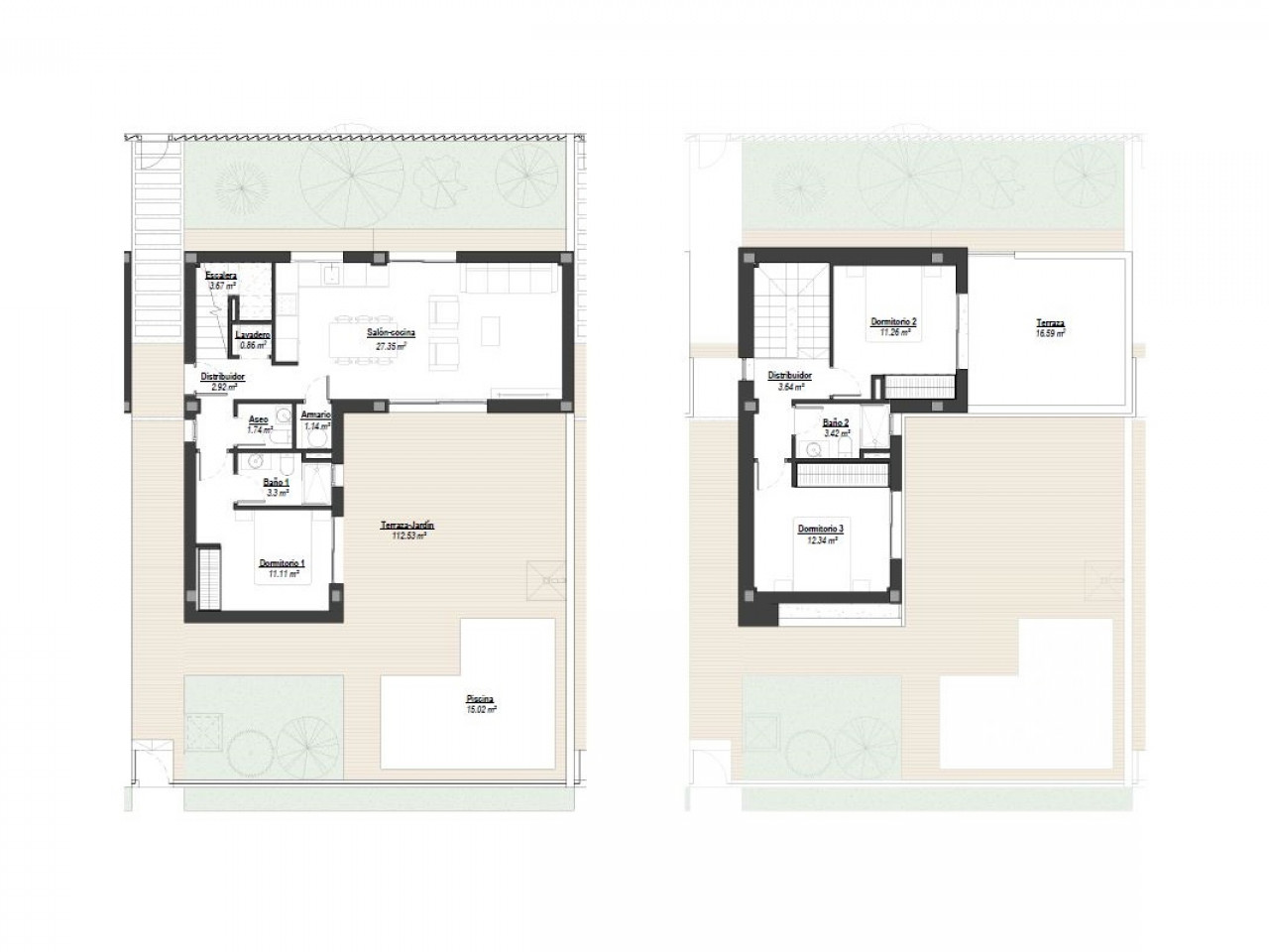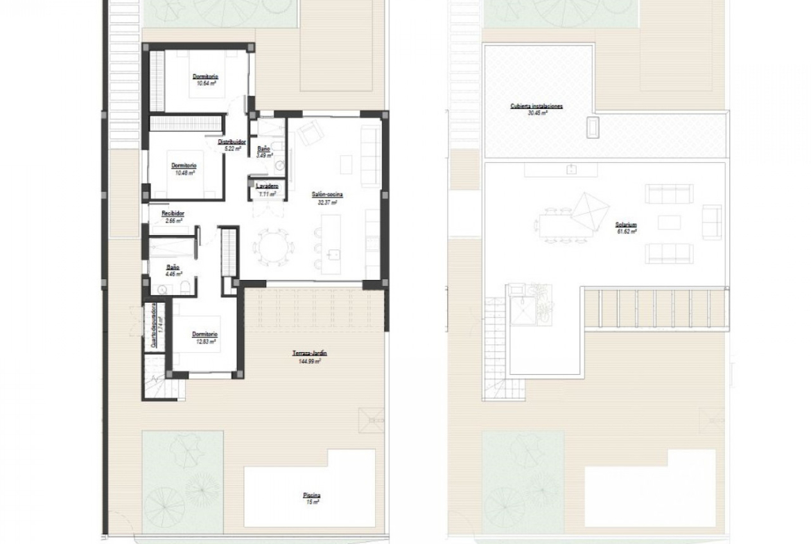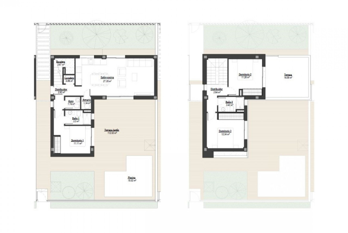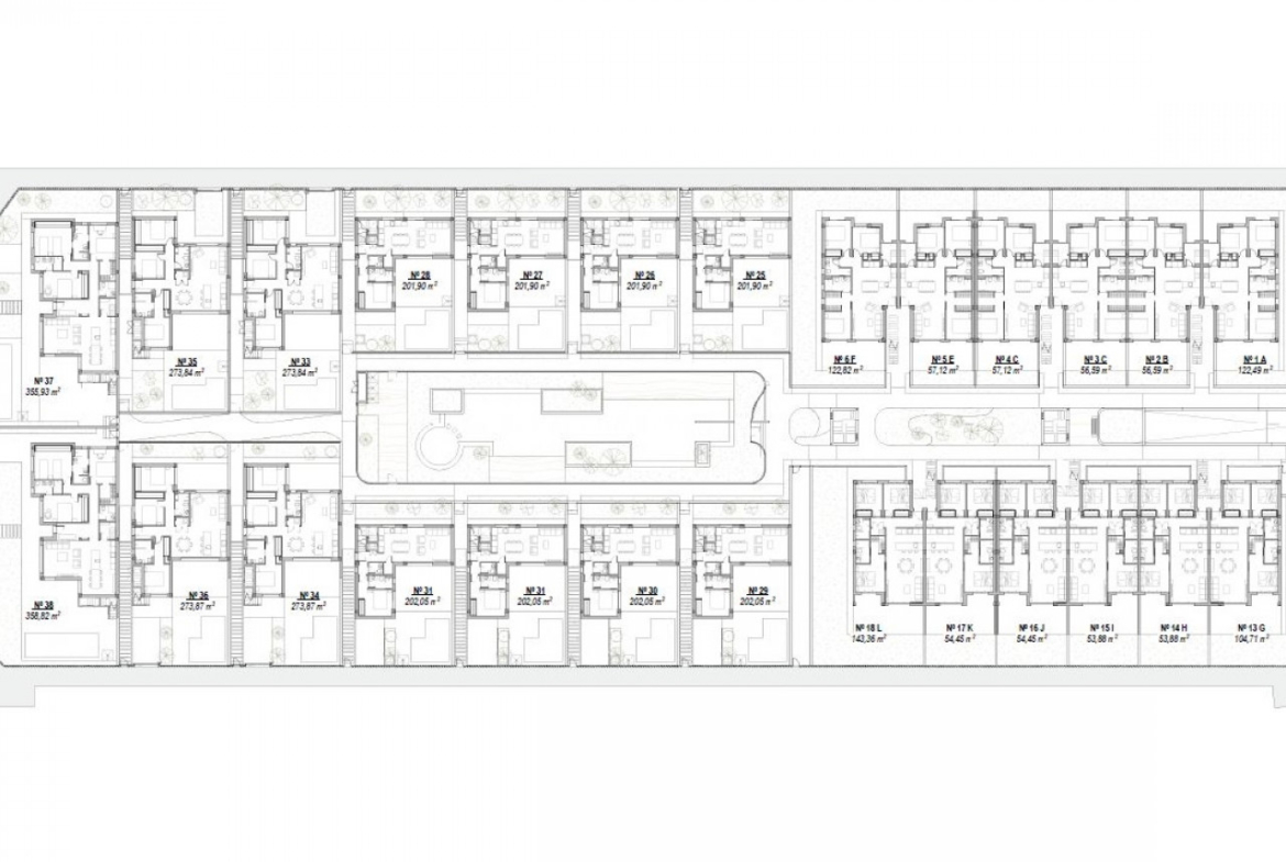 Kompleksą sudaro 3 miegamųjų bungalai: pirmo aukšto su privačiais sodais, viršutinio aukšto su didelėmis terasomis ir privačiu soliariumu bei vieno ar dviejų aukštų atskiros vilos, su skirtingais išplanavimo ir apdailos variantais.