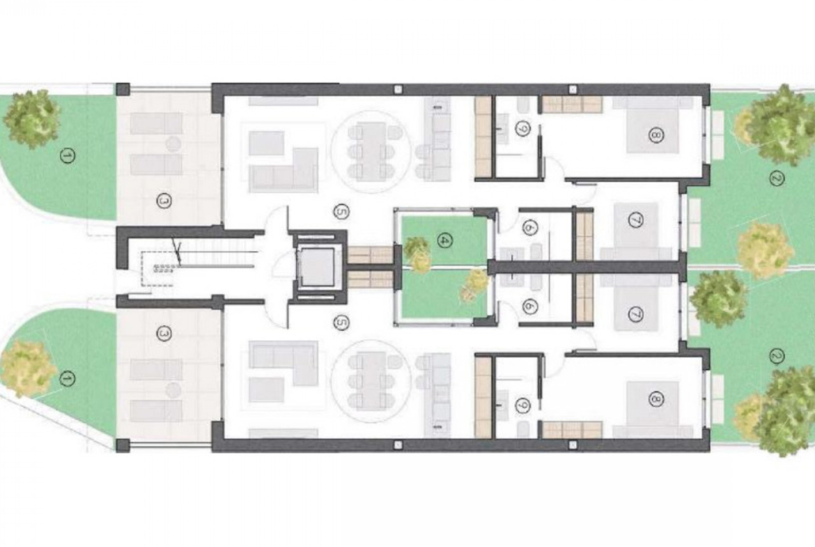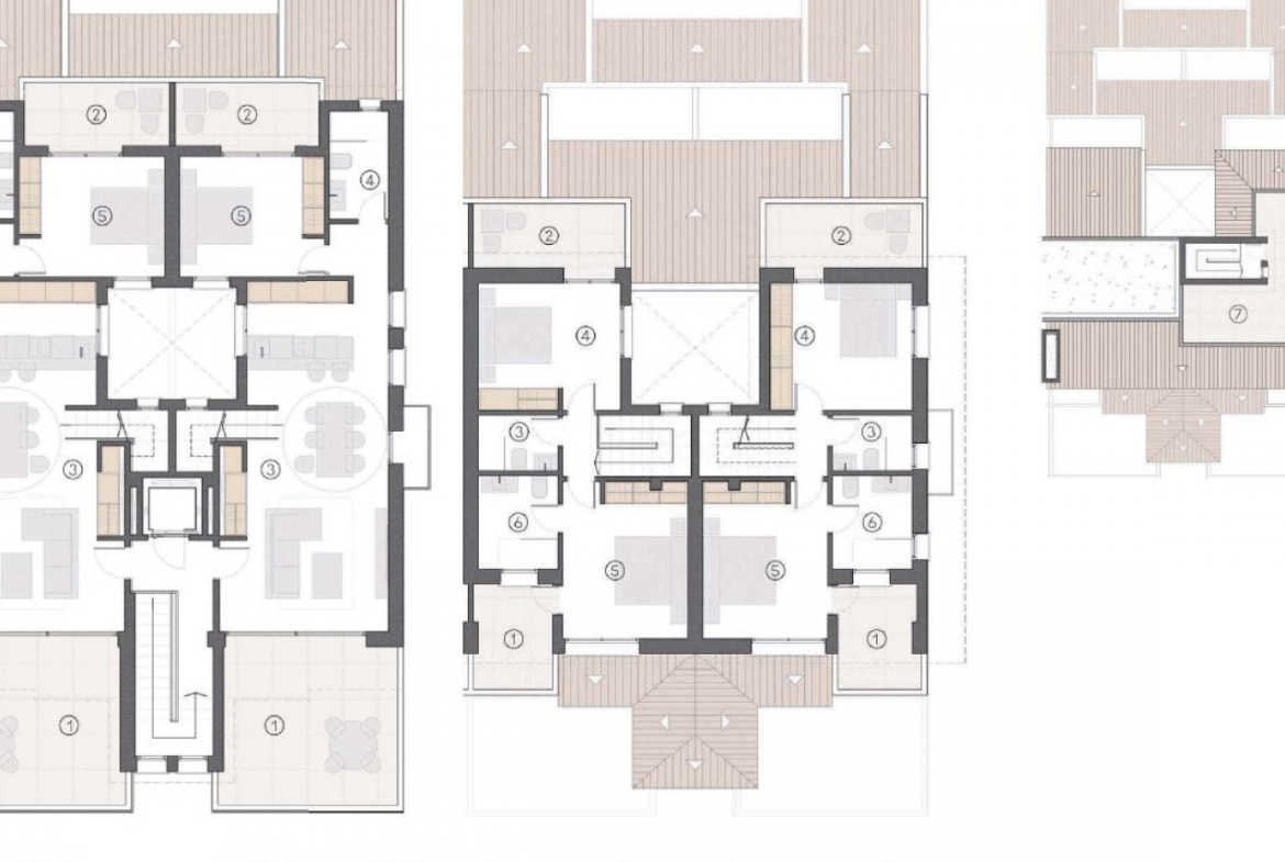 Būstus sudaro du arba trys miegamieji ir du vonios kambariai, svetainė su atvira virtuve ir terasa. Pirmame aukšte esančiuose bungaluose, kuriuose yra 2 miegamieji, bus didelė terasa ir priekinis bei galinis sodas. Antrame aukšte esantys bungalai su 3 miegamaisiais ir 3 vonios kambariais yra išdėstyti dviem lygiais, o kai kuriuose iš jų bus įrengtas privatus soliariumas. Visiems būstams priklauso požeminė automobilių stovėjimo aikštelė ir sandėliukas.