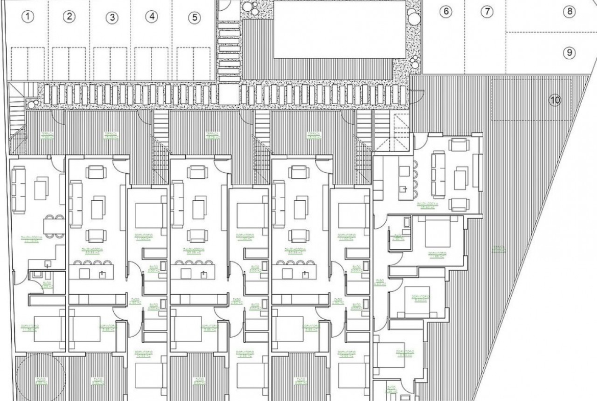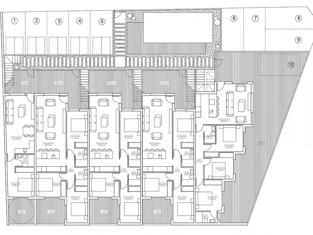 Yra bendras baseinas su saulės terasa, idealiai tinkanti poilsiui ir bendravimui.
