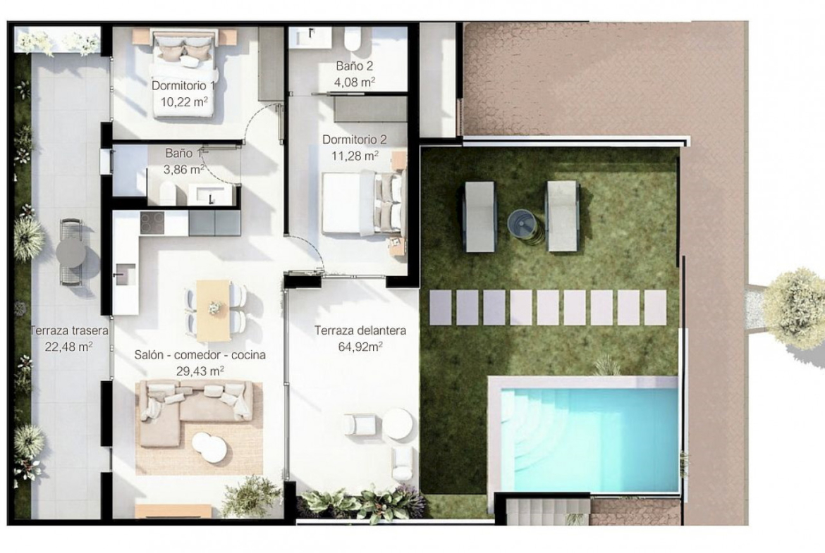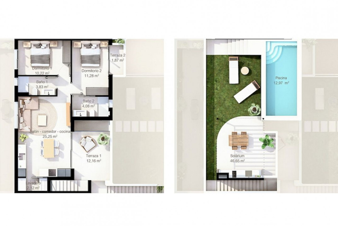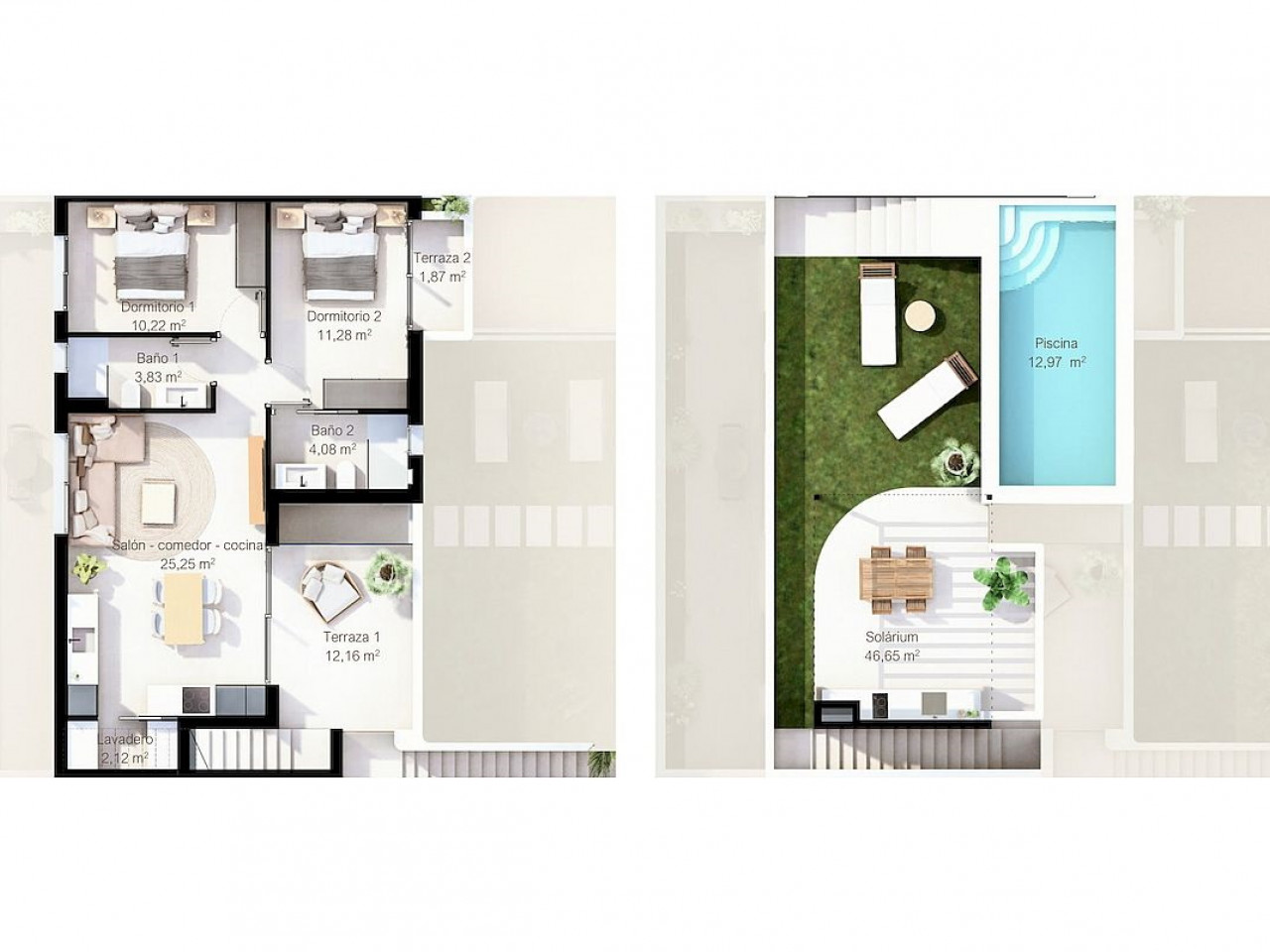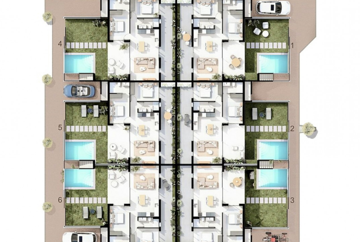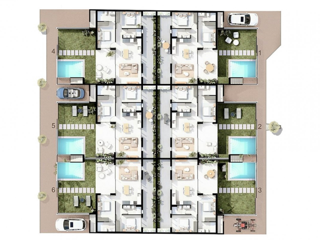 „Alma Maisonettes“ – išskirtinis dviejų miegamųjų bungalų kompleksas, kurio kiekvienas namas sukurtas pagal dizainerio preciziškumą ir turi privatų baseiną, įsikūręs San Pedro del Pinatar miestelyje.