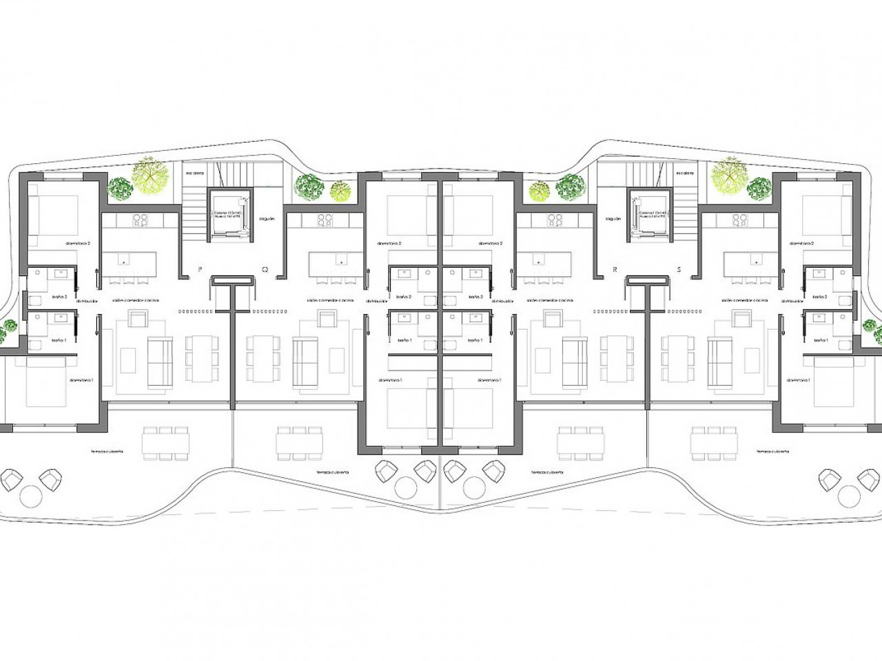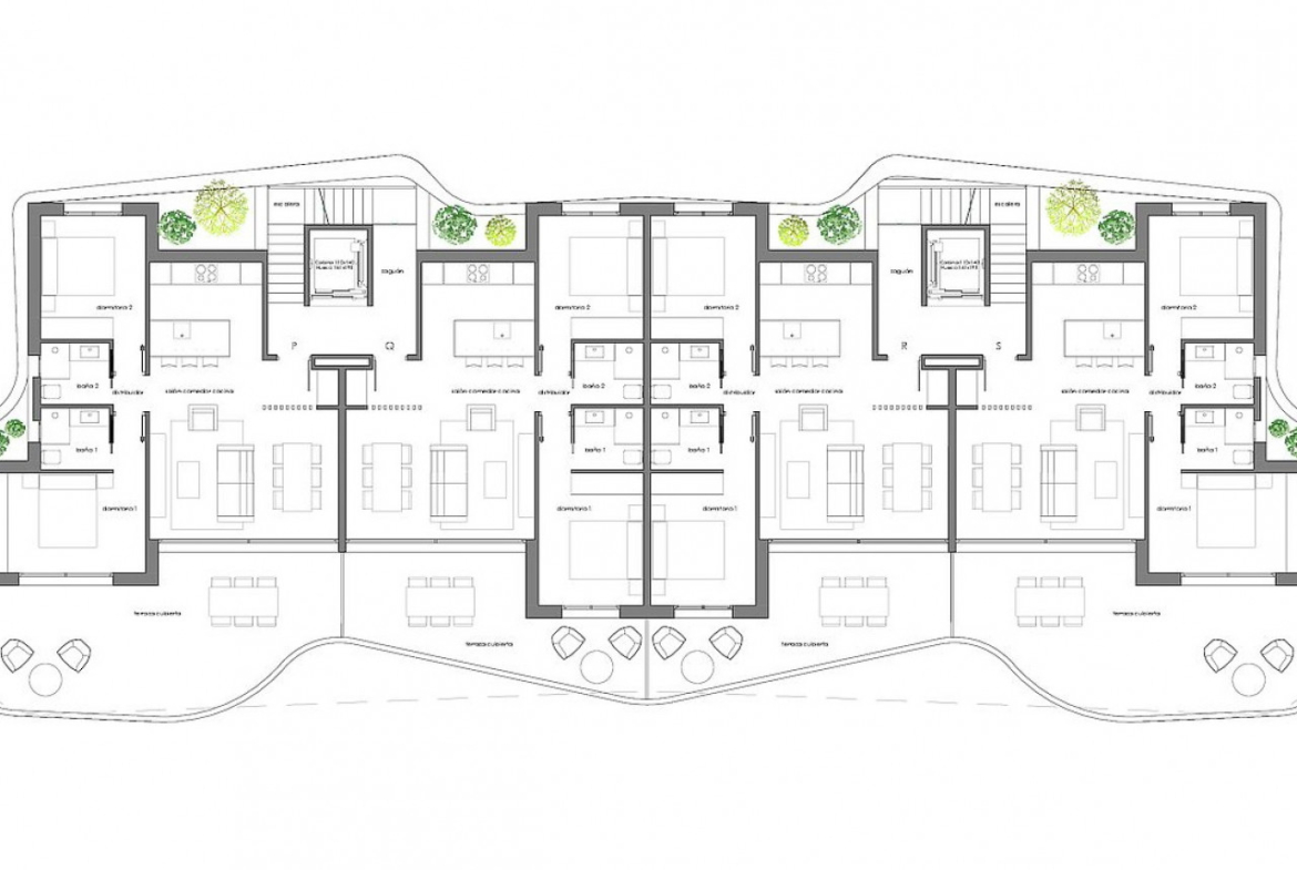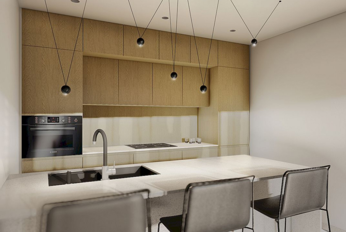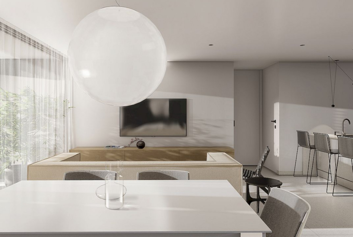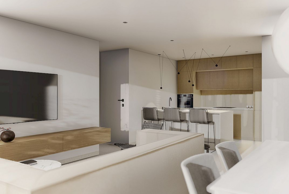 Visi apartamentai yra atviro plano tarp svetainės ir virtuvės, juos sudaro du erdvūs miegamieji su įmontuotomis spintomis ir du vonios kambariai, iš kurių vienas šalia pagrindinio miegamojo. Iš svetainės ir vieno iš miegamųjų yra tiesioginis išėjimas į terasas ir sodus.
