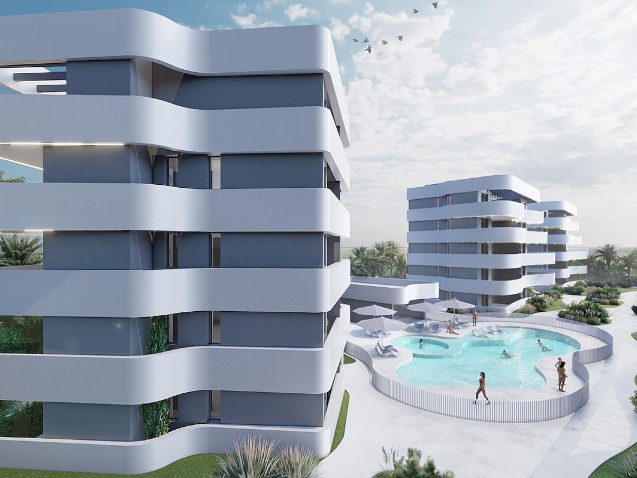 Kompleksas yra labai geroje vietoje, su nuostabiu vaizdu į druskos ežero lagūną ir Viduržemio jūros pakrantę. Netoliese yra keletas gražių restoranų, parduotuvių ir prekybos centrų. Greitai nuvažiuosite iki fantastiškų Guardamar del segura paplūdimių, keleto golfo aikštynų ar didelių prekybos centrų.