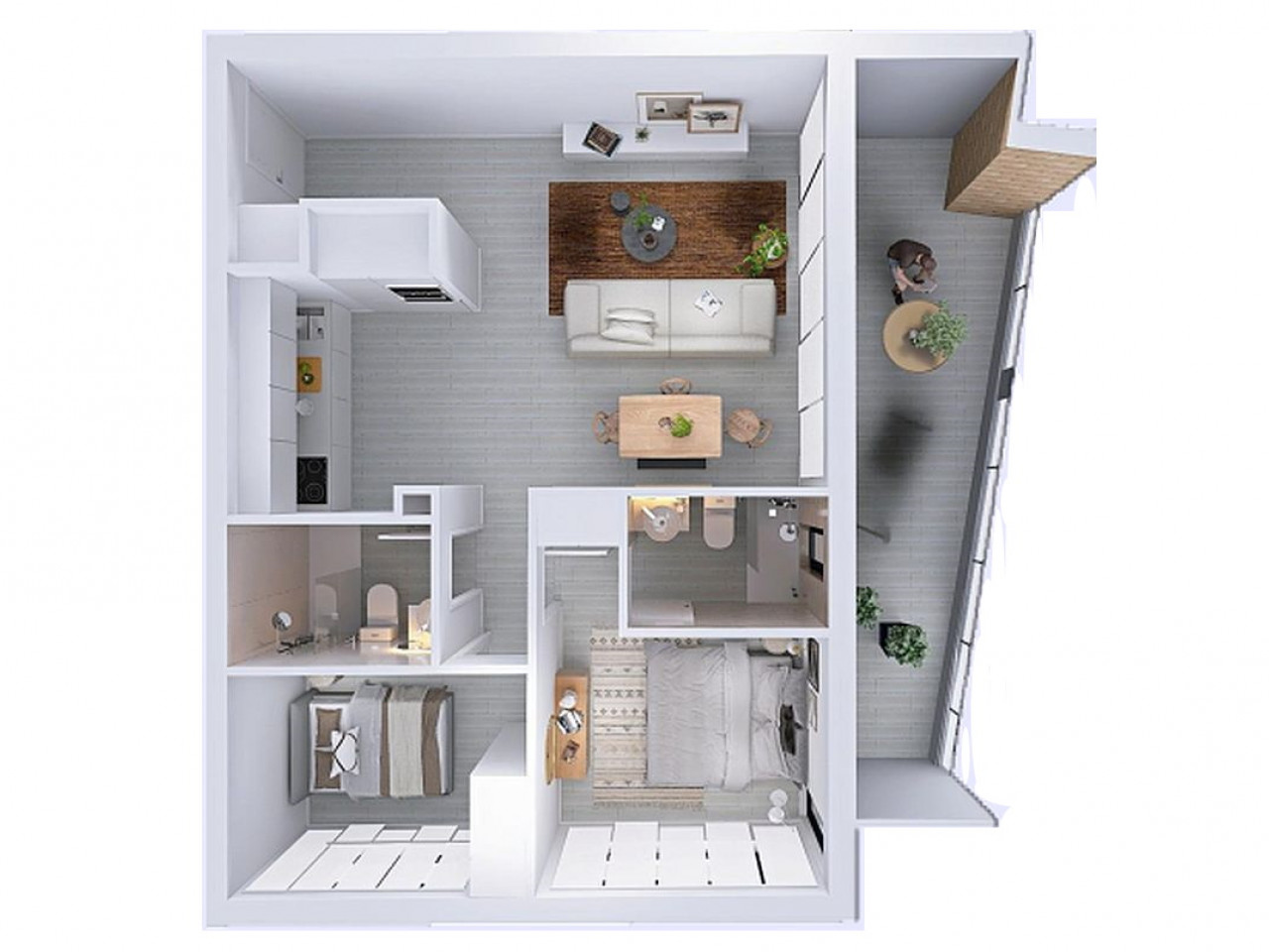 Šiame komplekse yra 16 apartamentų su 1, 2 arba 3 miegamaisiais ir 1 bei 2 vonios kambariais, visi su privačiomis terasomis nuo 7m2 iki 55m2, nukreiptomis į pietus arba vakarus, holas ir amerikietiška virtuvė. Apartamentai išsidėstę keturiuose aukštuose, čia yra bendras soliariumas su sūkurine vonia, jauki poilsio zona ir sauna. Taip pat yra galimybė už papildomą mokestį įsigyti automobilių stovėjimo vietą.