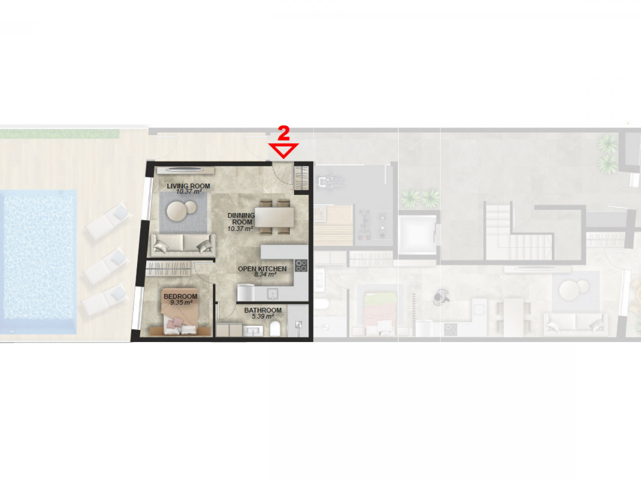 Siūlome įvairių tipų būstus – nuo studijų tipo butų iki 2 miegamųjų butų ir penthausų su privačiu soliariumu.