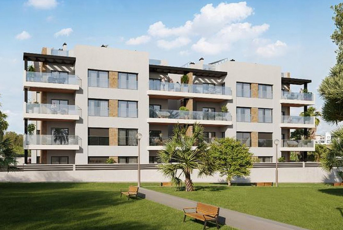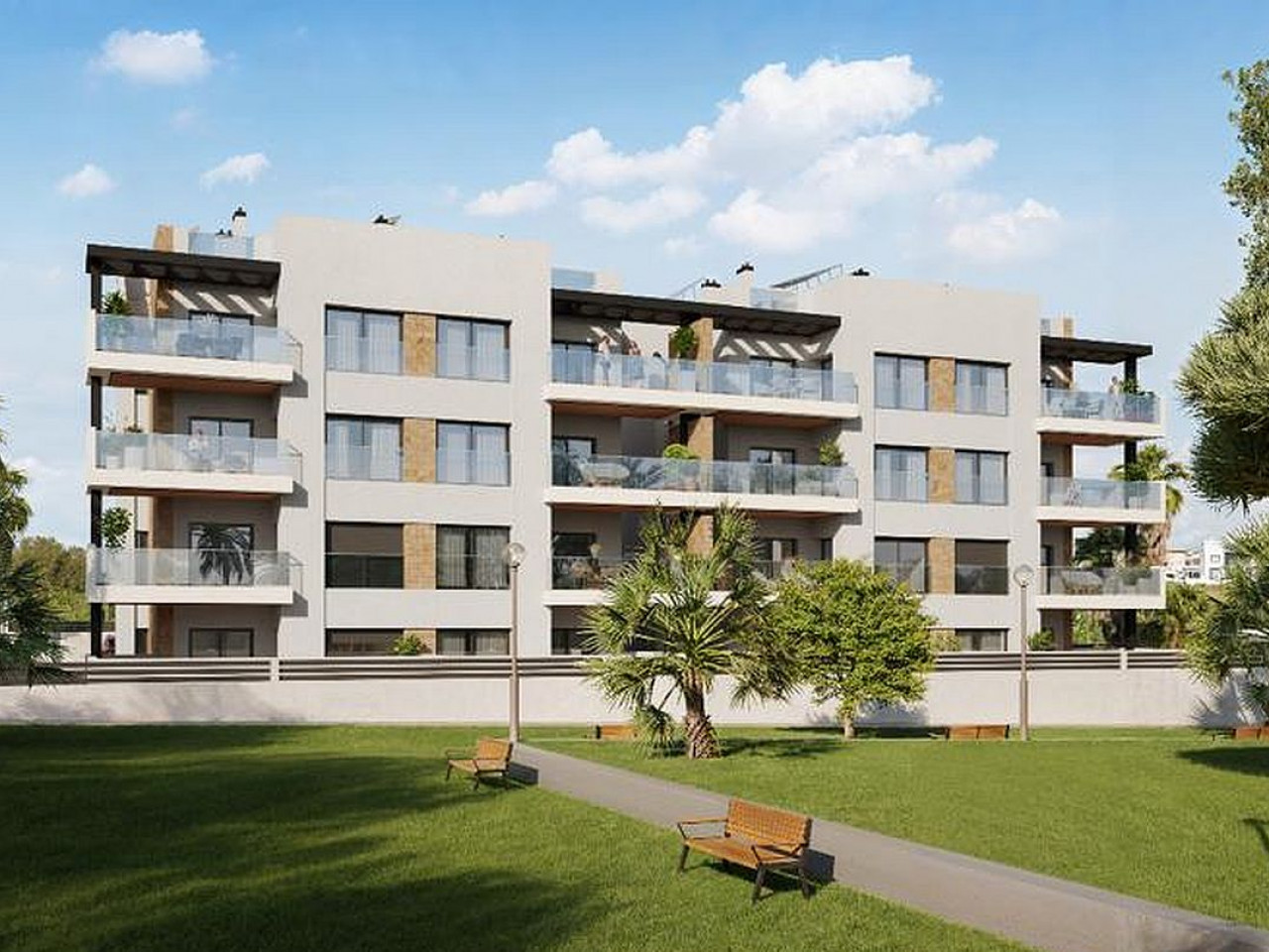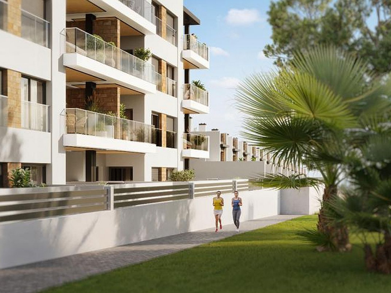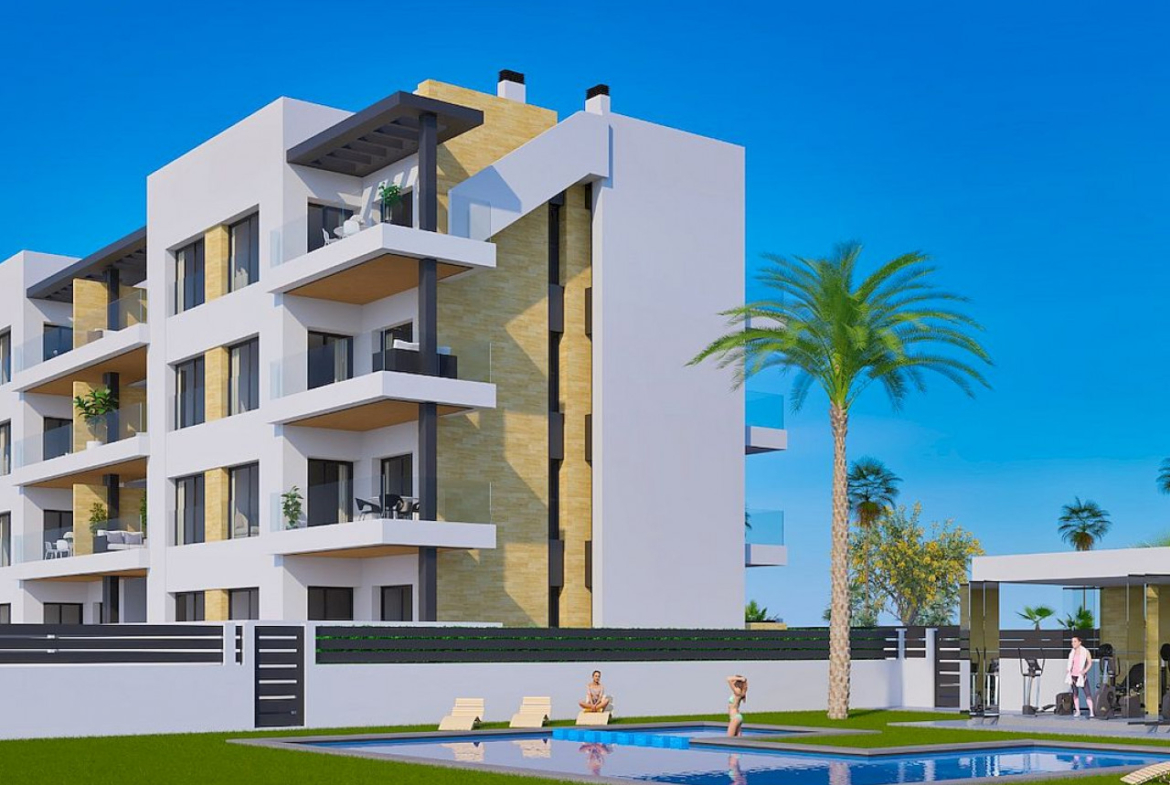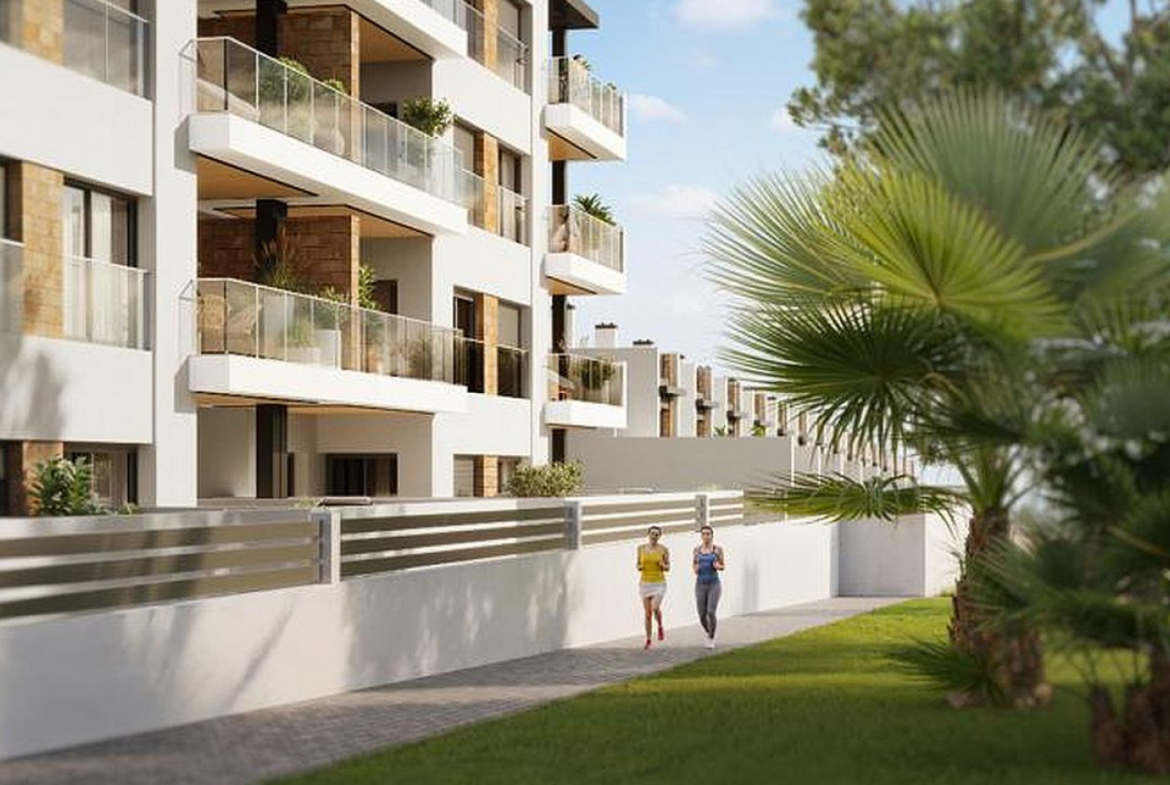 „Gomera Star“ – naujas modernių dviejų miegamųjų apartamentų su erdviomis terasomis, šalia jūros esantis kompleksas gyvybingame Aguas Nuevas rajone, Torrevieja mieste.