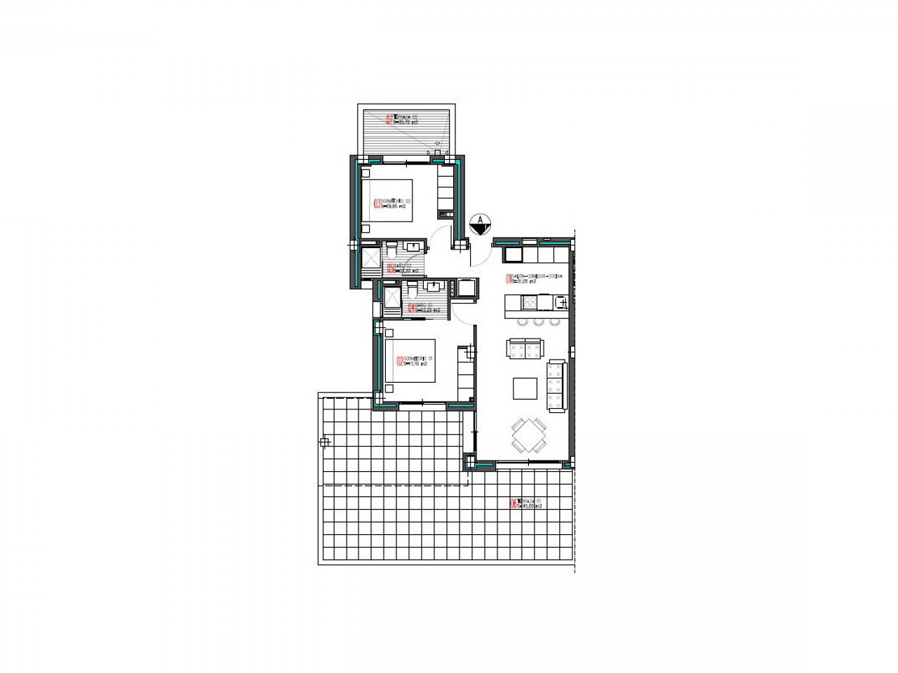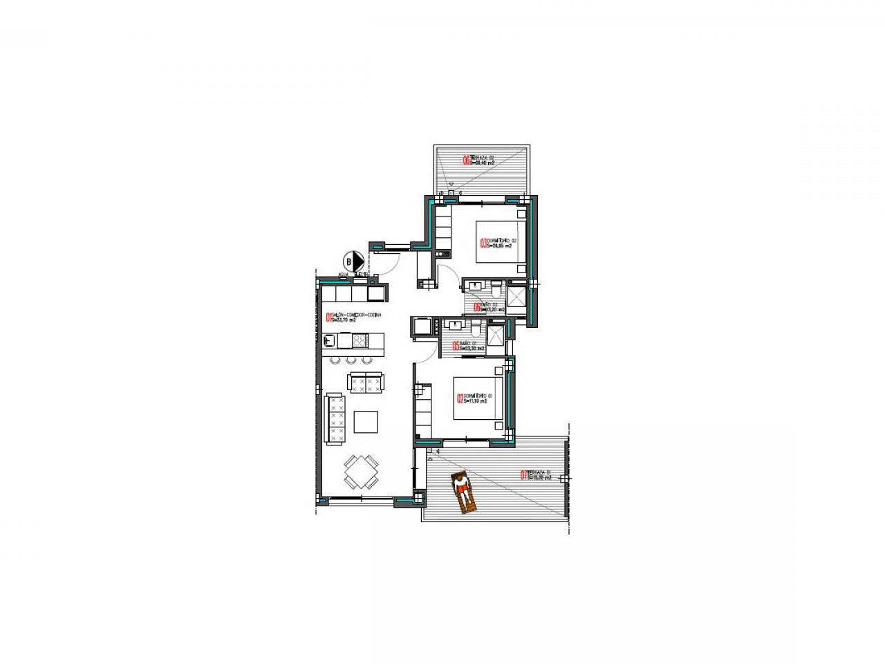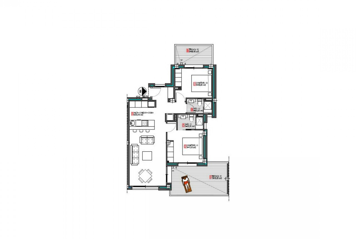 Kiekvienas butas turi atvirą išplanavimą, kuris sklandžiai sujungia svetainę ir virtuvę, sukuriant jaukią erdvę, puikiai tinkančią poilsiui ar pramogoms. Šiuose apartamentuose yra du erdvūs miegamieji ir du šiuolaikiški vonios kambariai, įskaitant pagrindinį miegamąjį, todėl šie apartamentai suteikia komfortą ir privatumą.