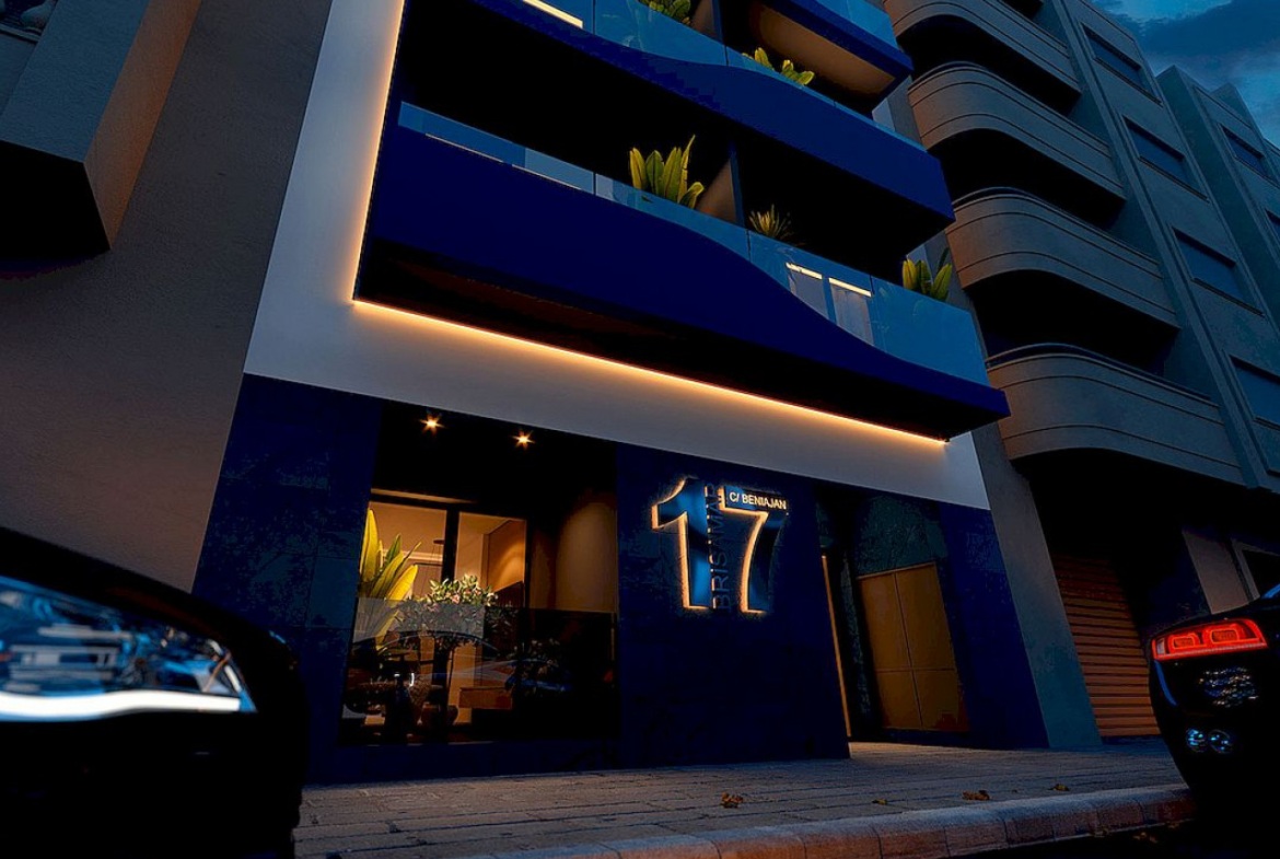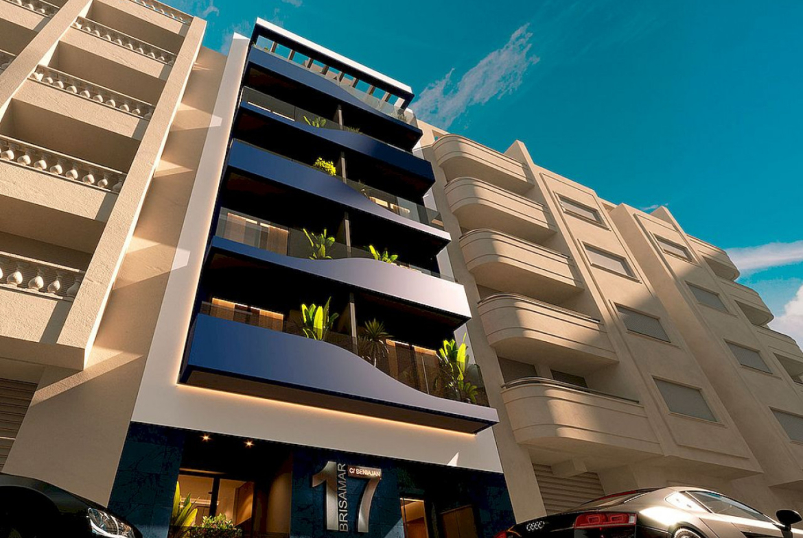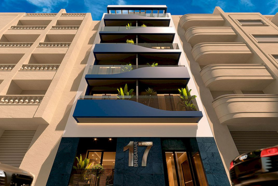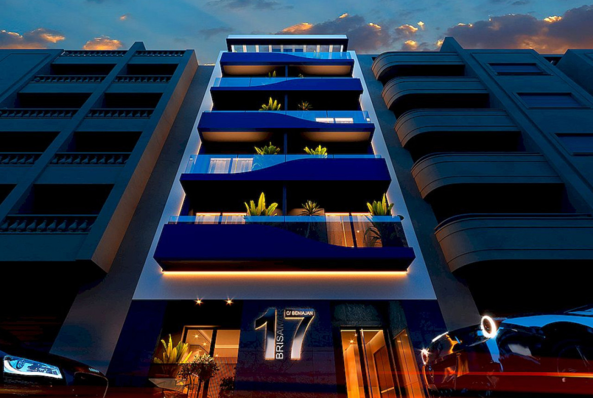 „Brisamar Building“ – naujas kompleksas Torrevieja mieste vos 190 metrų nuo Acequion paplūdimio, vieno geriausių Torreviejos ir Kosta Blankos paplūdimių.