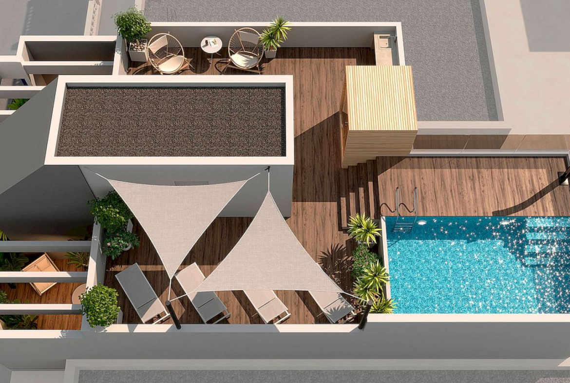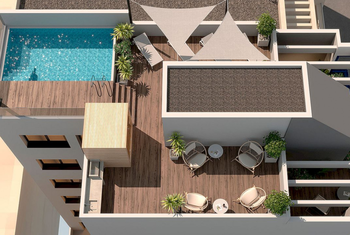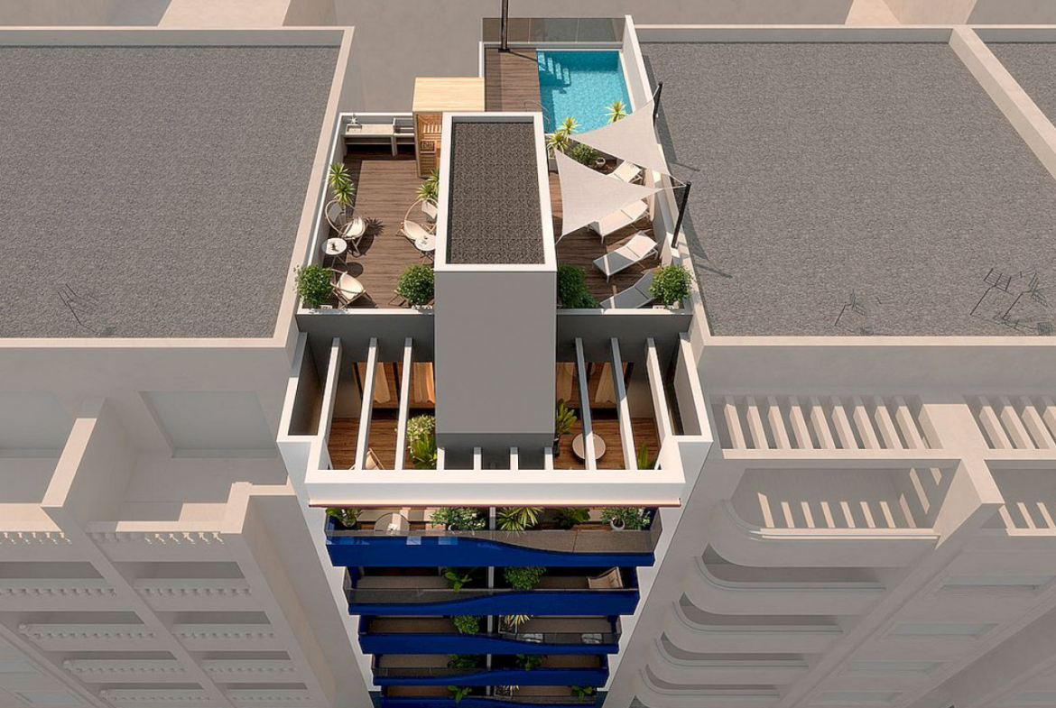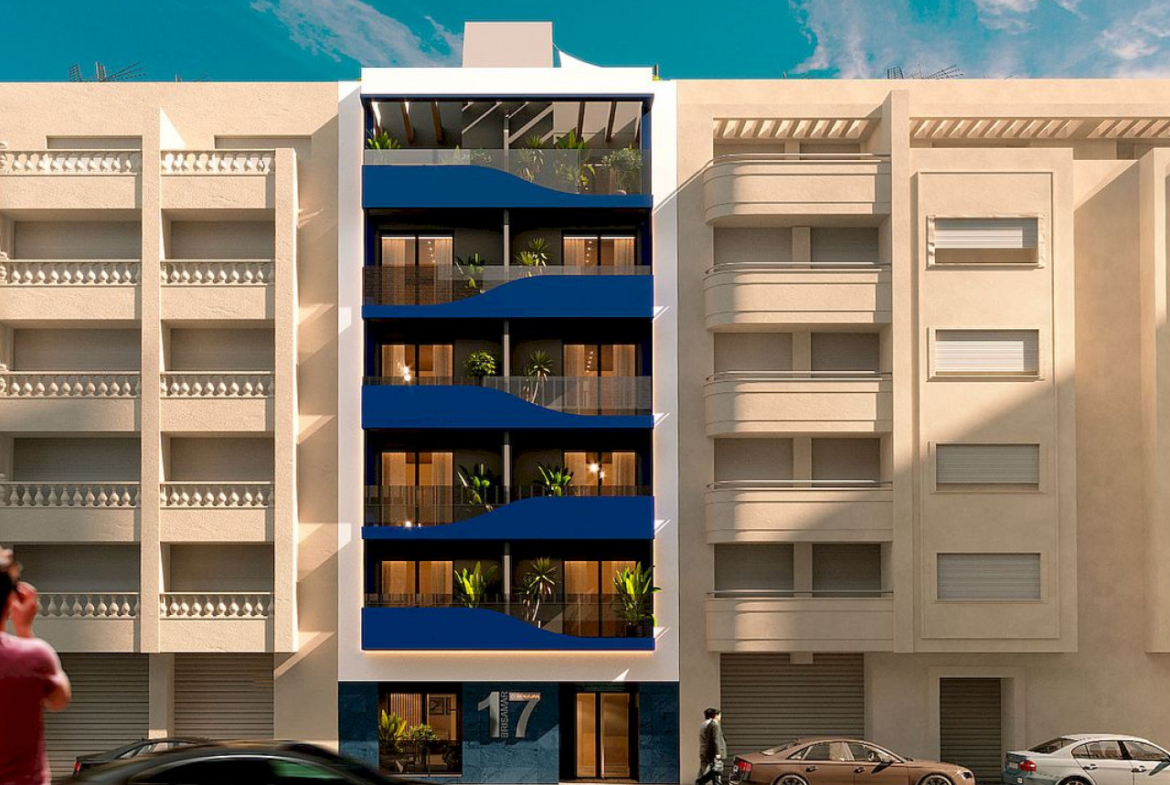 „Brisamar Building“ – naujas kompleksas Torrevieja mieste vos 190 metrų nuo Acequion paplūdimio, vieno geriausių Torreviejos ir Kosta Blankos paplūdimių.