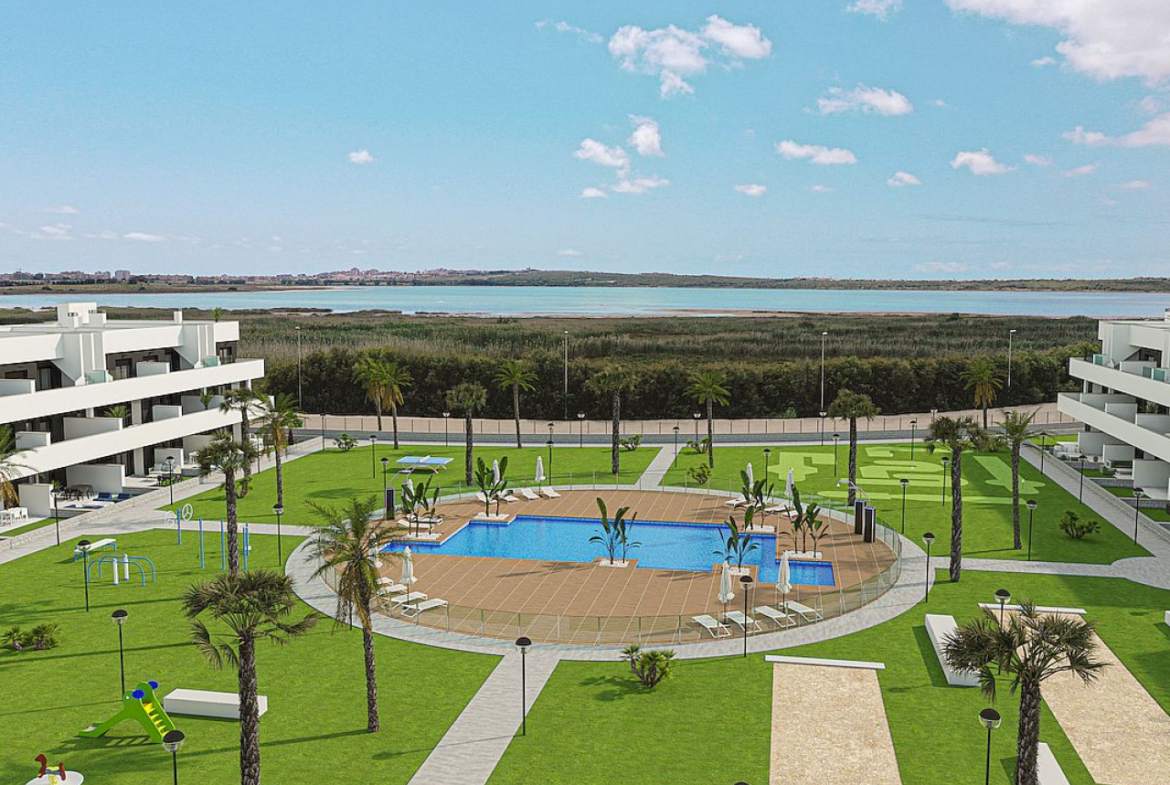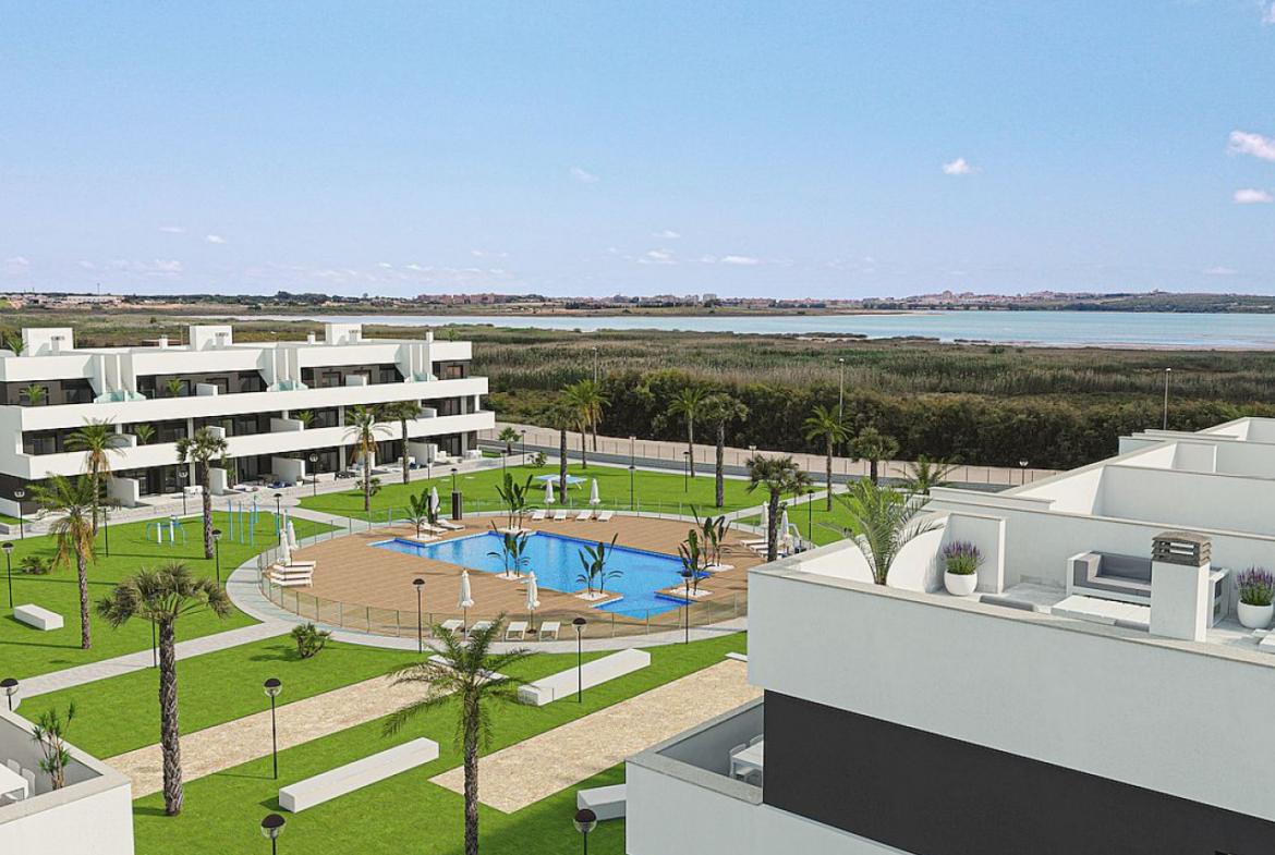 Iš šių priekinėje linijoje esančių apartamentų atsiveria įspūdingi Laguna Salada de La Mata vaizdai. Tai rami ir natūrali aplinka, kurioje galėsite mėgautis saulėlydžio pasivaikščiojimais pėsčiomis arba dviračiu. Mėgaukitės ramia ir atpalaiduojančia aplinka, puikiai tinkančia nepamirštamoms atostogoms.
