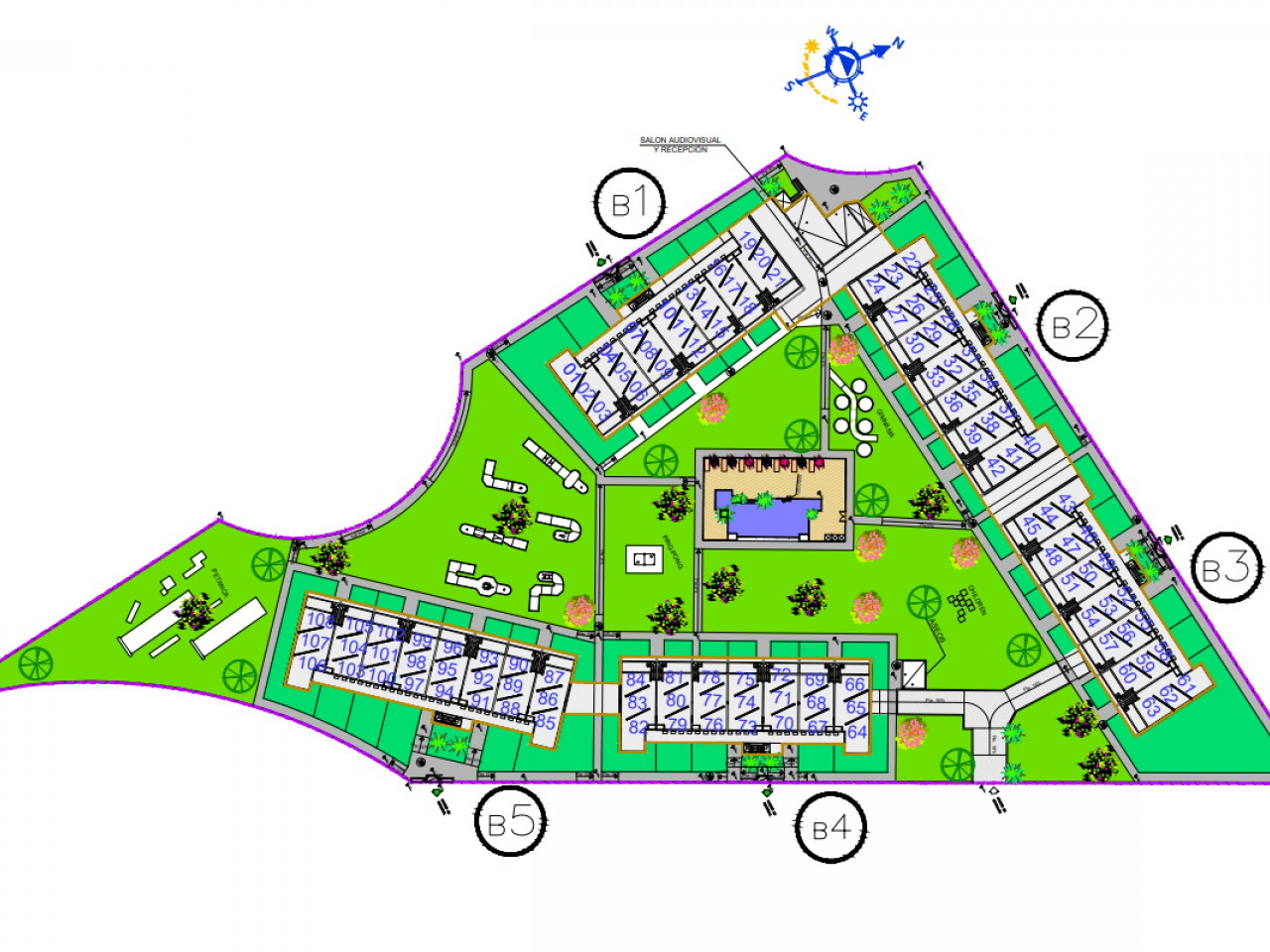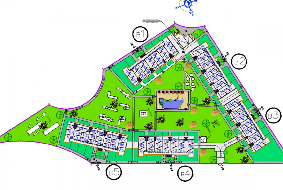 Pastatas yra privatus, uždaras iš išorės, jame yra visi patogumai: SPA, lauko treniruoklių salė, poilsio zonos, vaikų žaidimų aikštelė, mini golfas, petankės zona ir susirinkimų kambarys. .