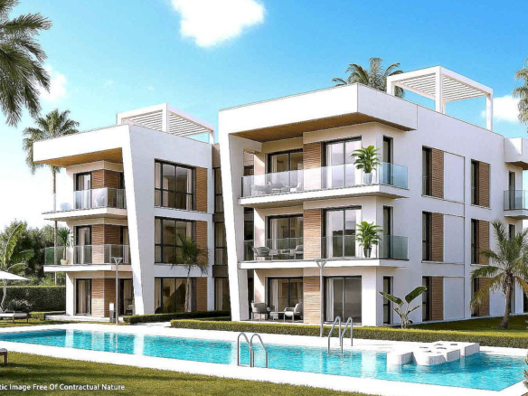Pirmo aukšto apartamentai turi privačias dideles terasas, vidurinio aukšto apartamentai – terasas, o penthausai – dvi terasas su privačiu soliariumu ir panoraminiais vaizdais. Neprilygstama vieta siūlo gražius vaizdus į golfo aikštyną ir Mar Menor.