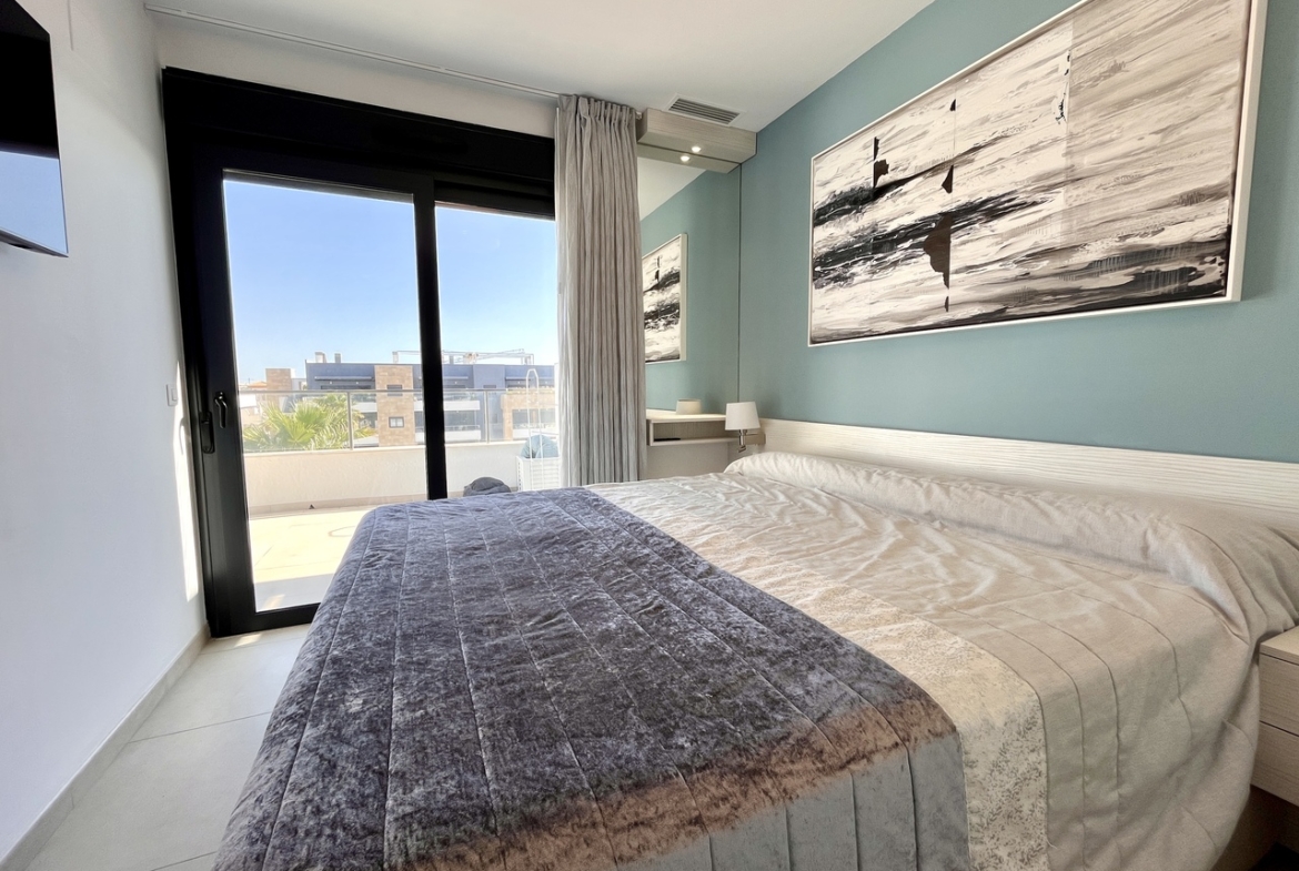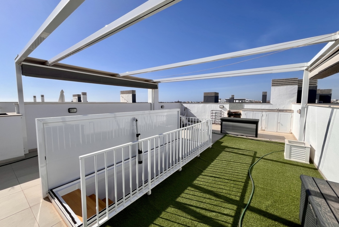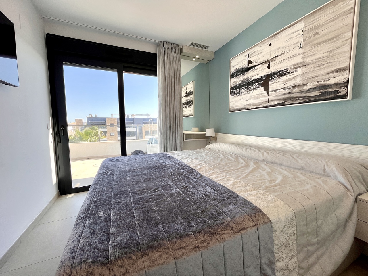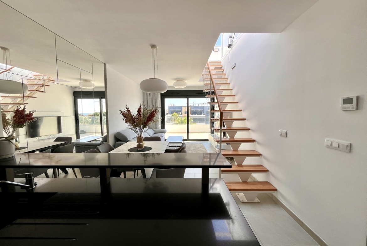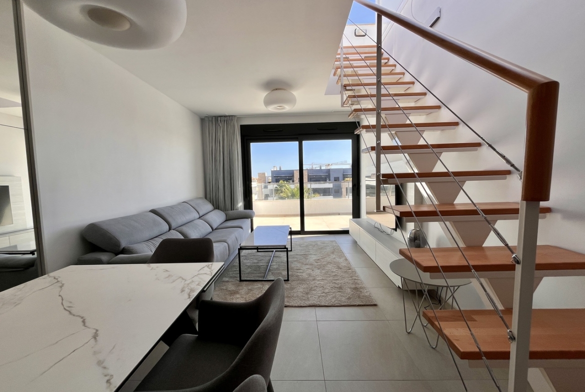 Fantastiška galimybė įsigyti nepriekaištingą 2 miegamųjų, 1 vonios kambario penthausą, esantį prestižiniame Flamenca Village komplekse. Įsikūręs viename iš geidžiamiausių Orihuela Costa rajonų, šis nuostabus penthausas siūlo puikų prabangos, vietos ir gyvenimo būdo derinį. Kompleksas vos kelios minutės pėsčiomis nuo auksinio Playa Flamenca smėlio paplūdimio ir vos kelios minutės nuo Zenia Boulevard prekybos centro.