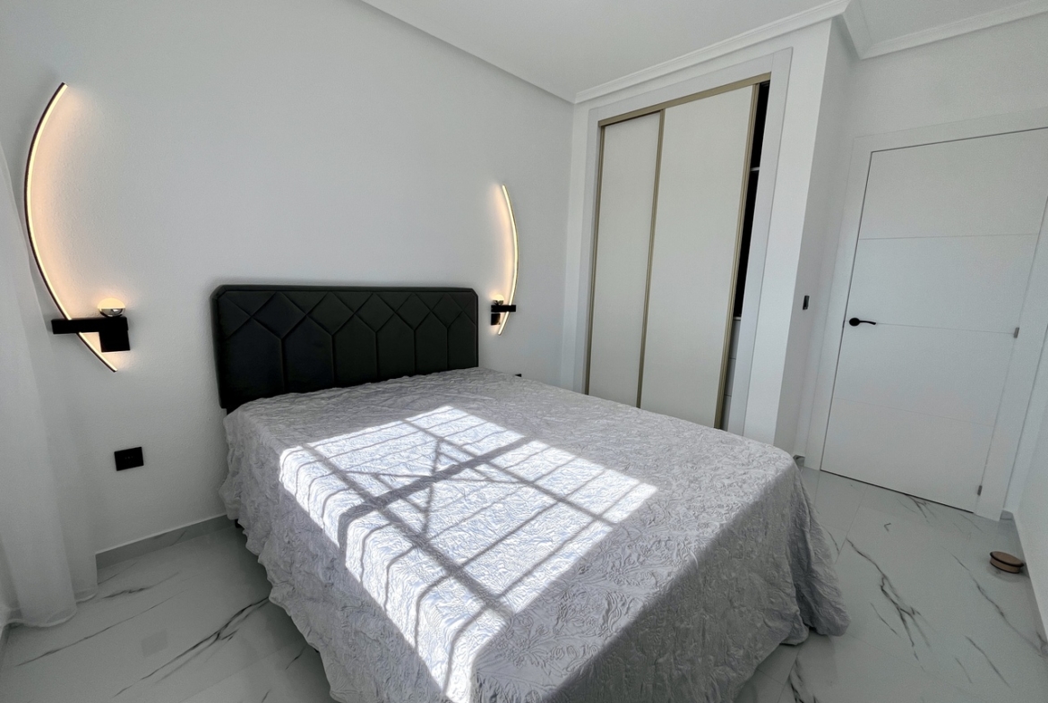 This beautifully renovated 1-bedroom, 1-bathroom penthouse apartment is perfectly positioned in the highly sought-after area of Playa Flamenca, within the desirable urbanization Zenia Star 1. Boasting a bright and open layout, the property offers a modern and stylish living space designed for comfort and convenience. The apartment enjoys a sunny south-facing orientation, allowing for plenty of natural light throughout the day, and features wonderful sea views that can be enjoyed from the main living area and terrace.