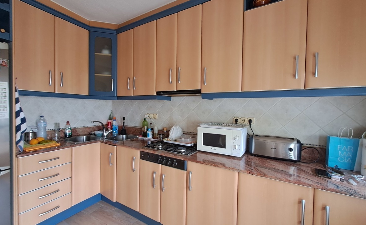 In the entrance there are stairs that goes to the property. Inside we can find first a good size living room, three bedrooms (one of them with terrace), one bathroom, a completed equipped kitchen with access to a patio. From the patio there are stairs that connect to the restaurant.