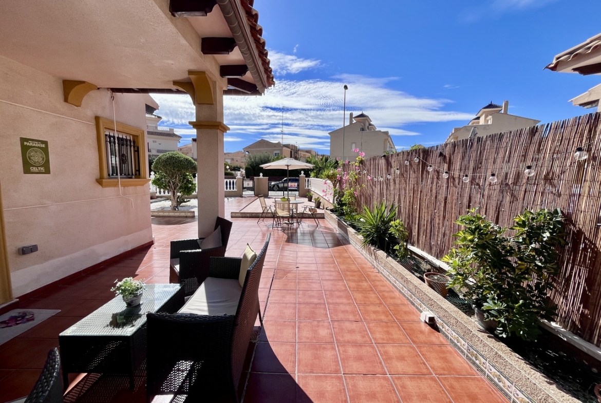 Namas yra puikios būklės ir yra erdviame 139 m² sklype su privačiu įvažiavimu, saulėta terasa su ištraukiamais stogeliais ir daugybe lauko erdvės, kurioje galite mėgautis Viduržemio jūros klimatu ištisus metus.