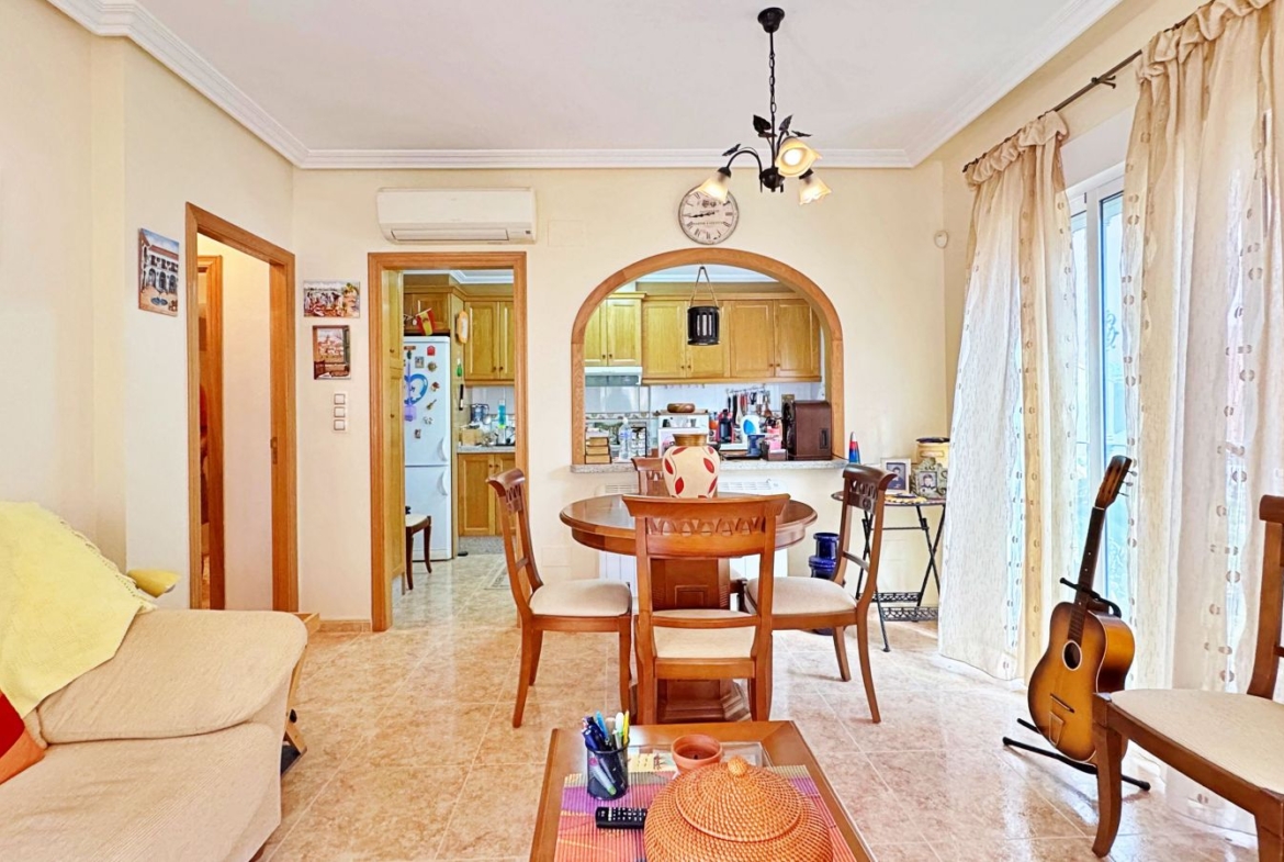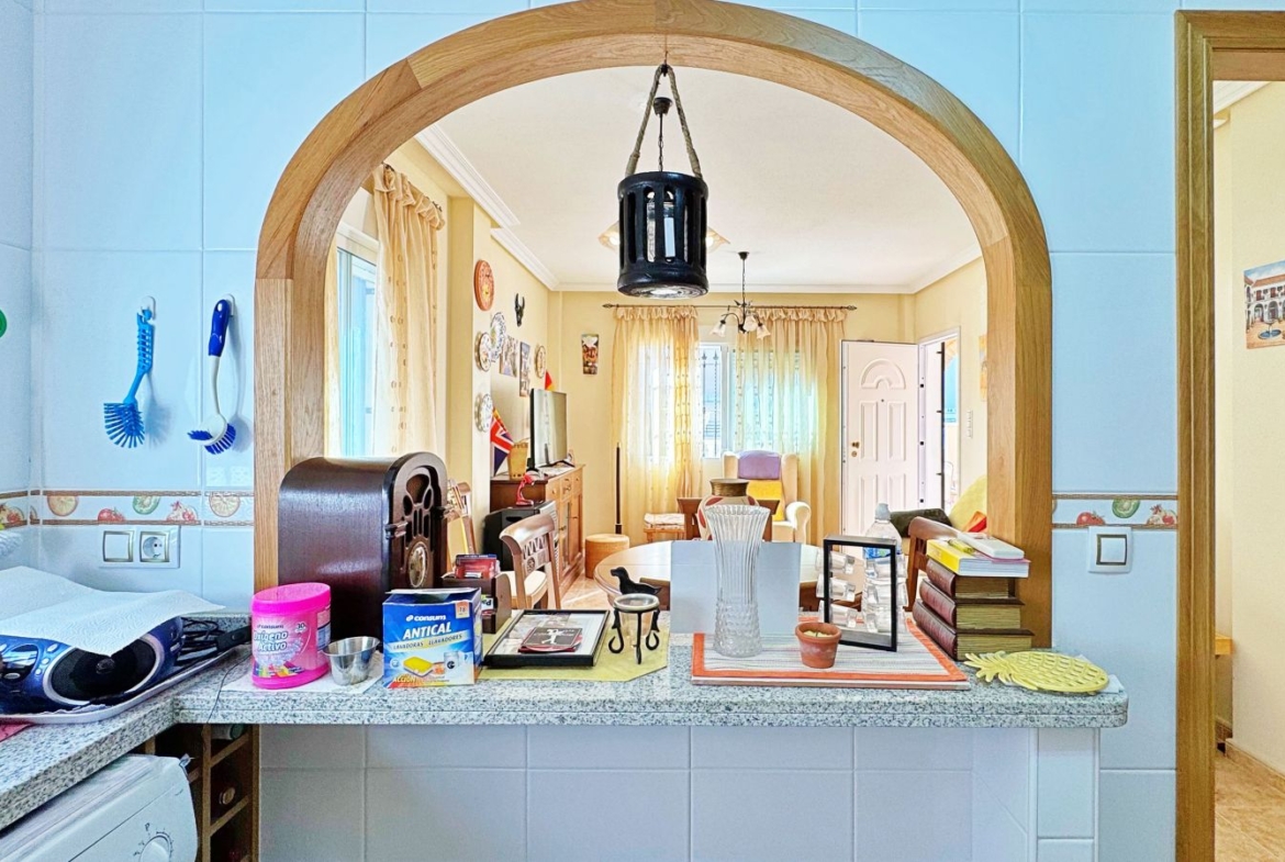 Gražus kampinis kotedžas, įsikūręs išskirtiniame „Vista Azul Residential“ komplekse, viename geidžiamiausių Villamartin rajonų, Orihuela Costa mieste. Šis namas puikiai derina Viduržemio jūros regiono stilių, komfortą ir puikią vietą ramioje, šeimai palankioje aplinkoje, netoli visų būtiniausių patogumų.