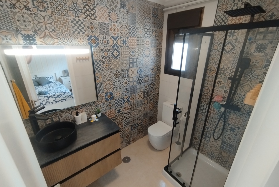 GRAŽUS atnaujintas kotedžas jaukioje urbanizacijoje netoli San Miguel de Salinas miestelio. Įėję į nuosavybę, Jus pasitiks didelė priekinė terasa-sodas, kurioje gausu saulės. Įžengus į namą, rasite erdvią svetainę su valgomojo zona ir modernią, erdvią virtuvę.