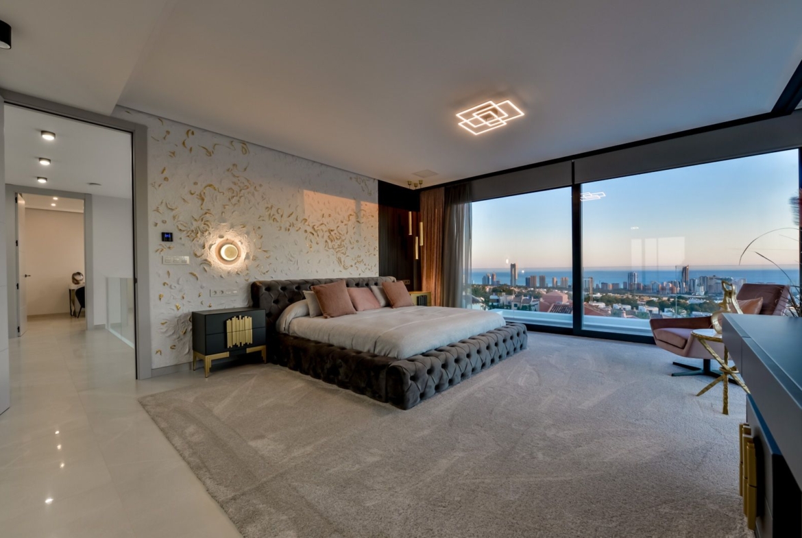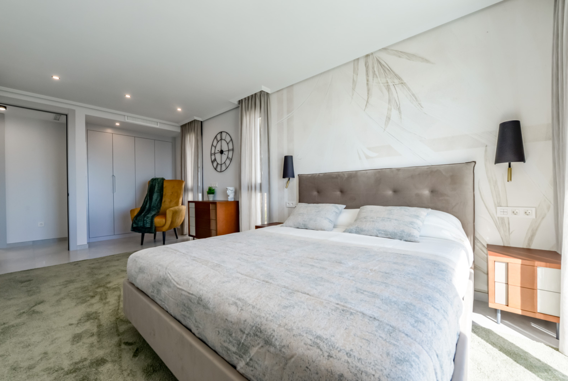 Į miegamųjų aukštą patenkame liftu arba vidiniais laiptais, kur pamatysime daugiau nei 50 m2 pagrindinį miegamąjį su vonios kambariu, rūbine ir terasa, du maždaug 20 m2 miegamuosius, vonios kambarį ir terasą šiems miegamiesiems.