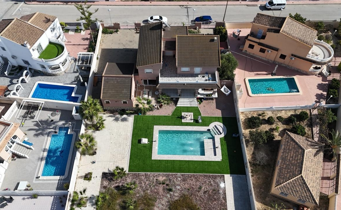 Atraskite šią įspūdingą, atskirą 5 miegamųjų, 3 vonios kambarių vilą, puikiai įsikūrusią viename patraukliausių Benijofar rajonų.