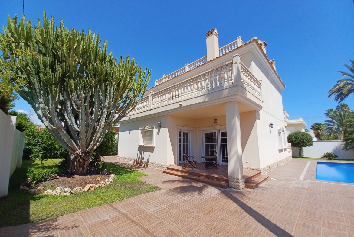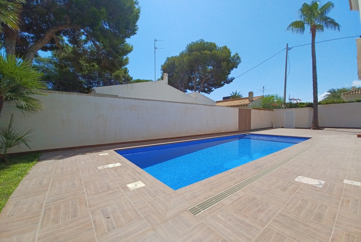 This fabulous home is located in a prime location in Cabo Roig, just 400m from the beach. This stunning villa has been beautifully refurbished throughout to a high standard with underfloor heating in all 4 bathrooms, air conditioning in all rooms and ceramo granite flooring throughout. Set on a 518m2 plot the property consists of: