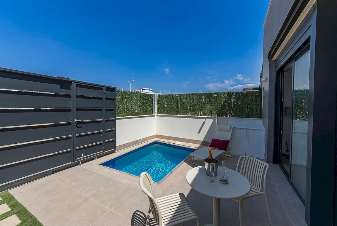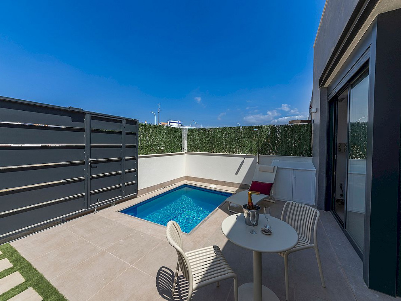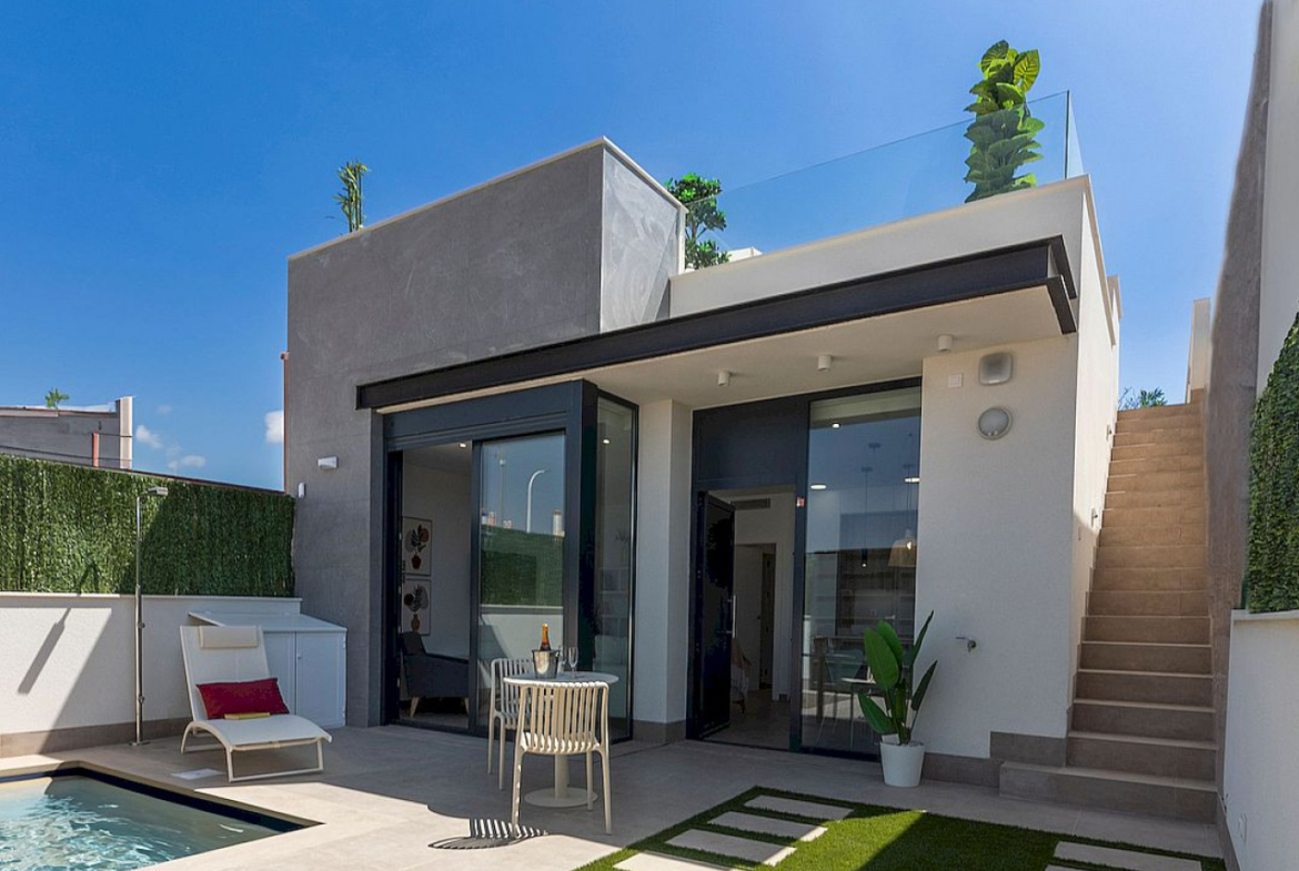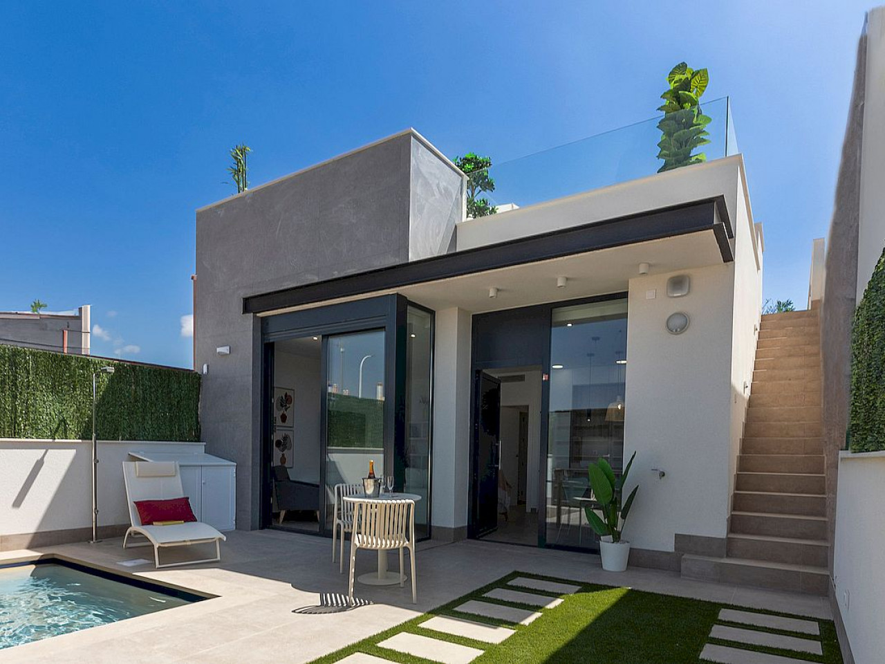 Gražios vieno aukšto 2 arba 3 miegamųjų ir 2 vonios kambarių atskiros ir sublokuotos vilos su soliariumu ir privačiu baseinu, esančios tik 400 metrų nuo paplūdimių.
