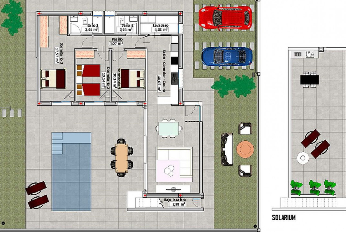 Lauke galite patekti į privatų stogo soliariumą su vasaros virtuve, nuostabiu sodu su dirbtine žole ir grindimis bei privačiu baseinu su apšvietimu ir lauko dušu, kuriuo galėsite mėgautis šiltomis vasaros naktimis. Be to, kiekvienas namas turi savo parkavimo vietą.