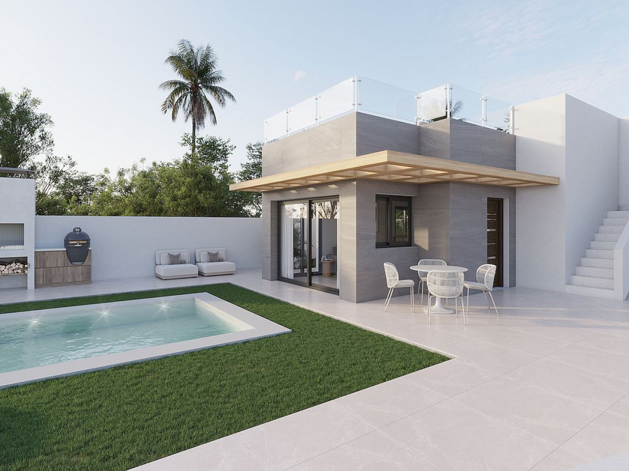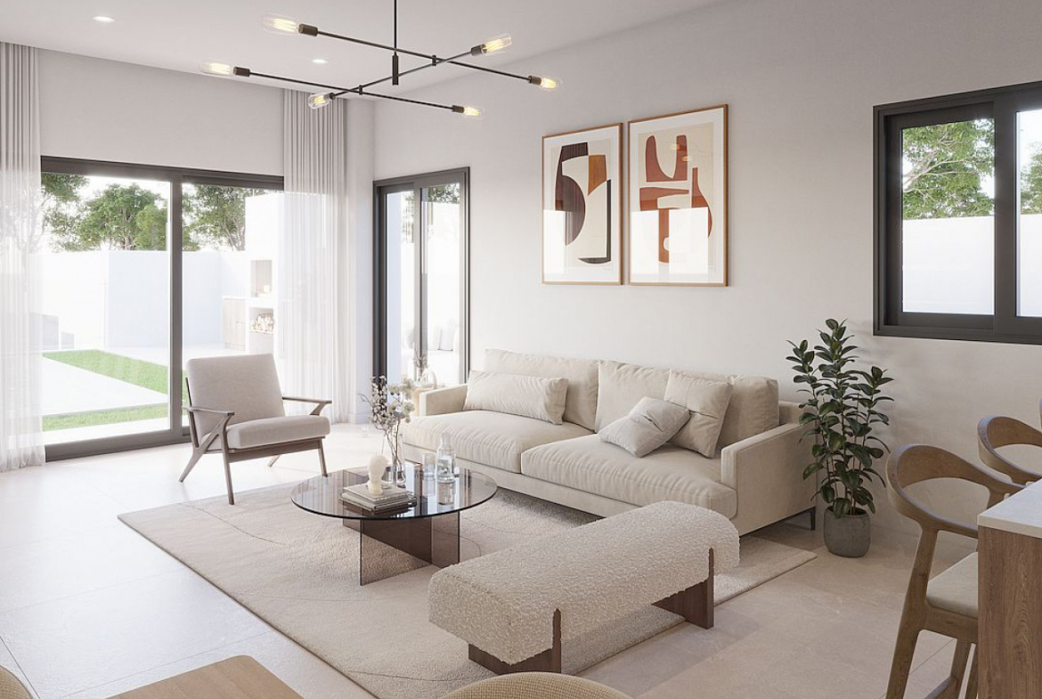 Komfortas: Būstas suprojektuotas viename lygyje, o visi kambariai turi tiesioginį išėjimą į baseino, sodo ir barbekiu zoną.