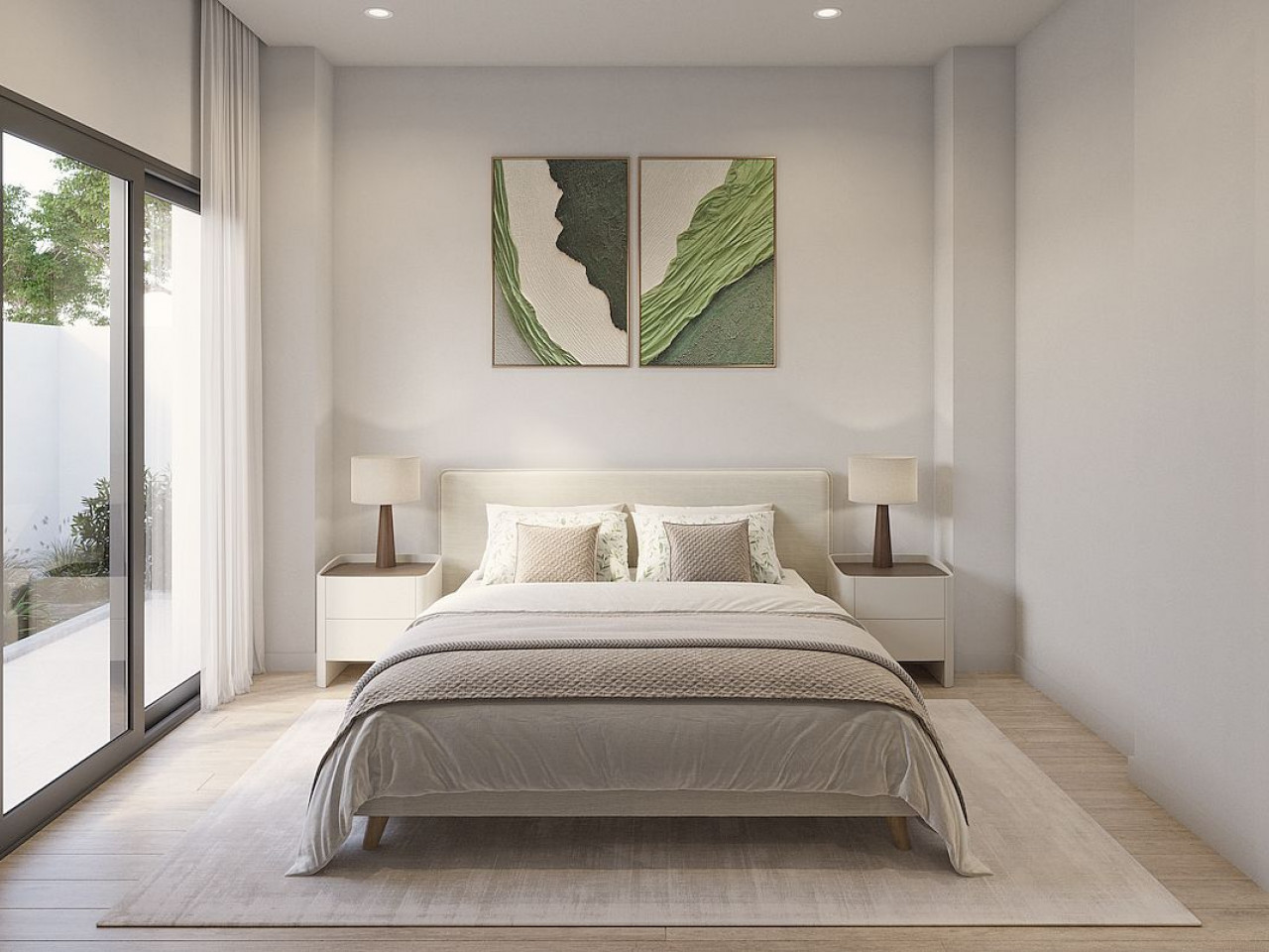 Namas pasižymi trimis miegamaisiais su integruotomis sieninėmis spintomis bei dviem vonios kambariais. Erdvi svetainė sujungta su virtuve, o visame būste įrengta centrinio oro kondicionavimo priešinstaliacija.