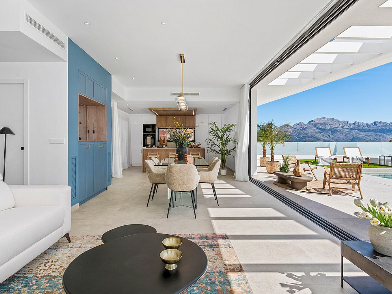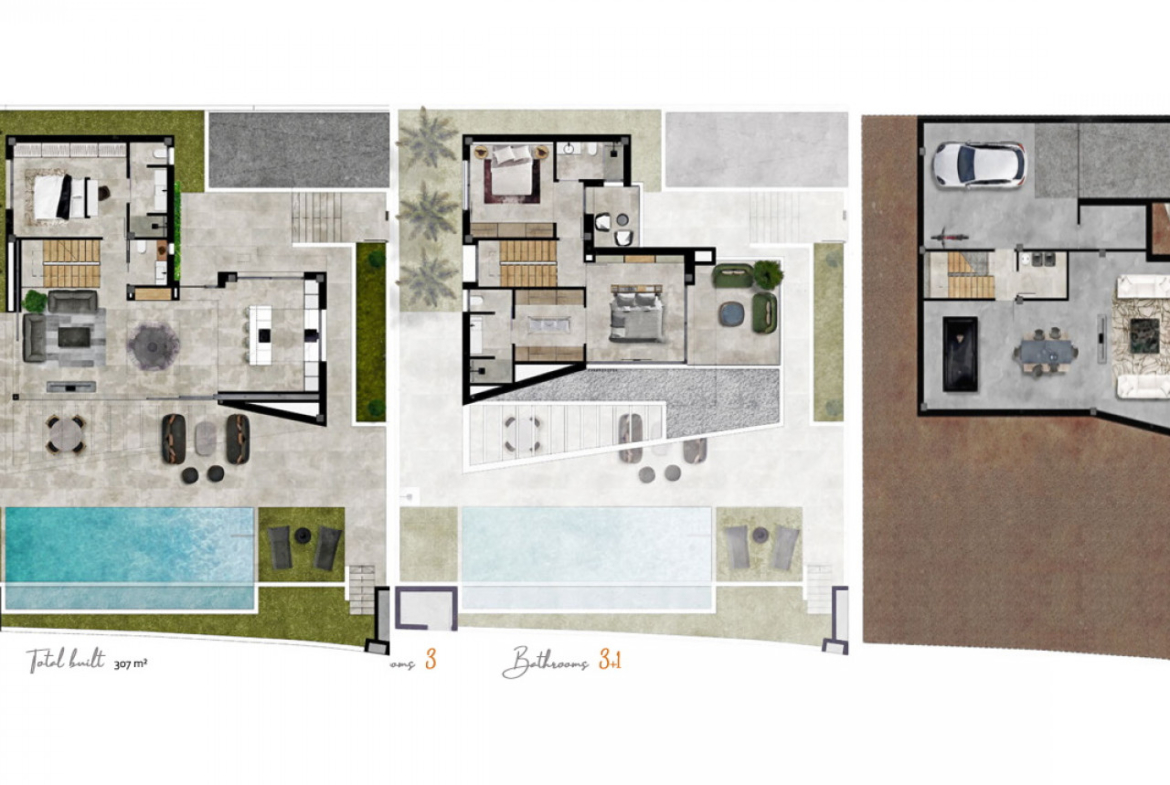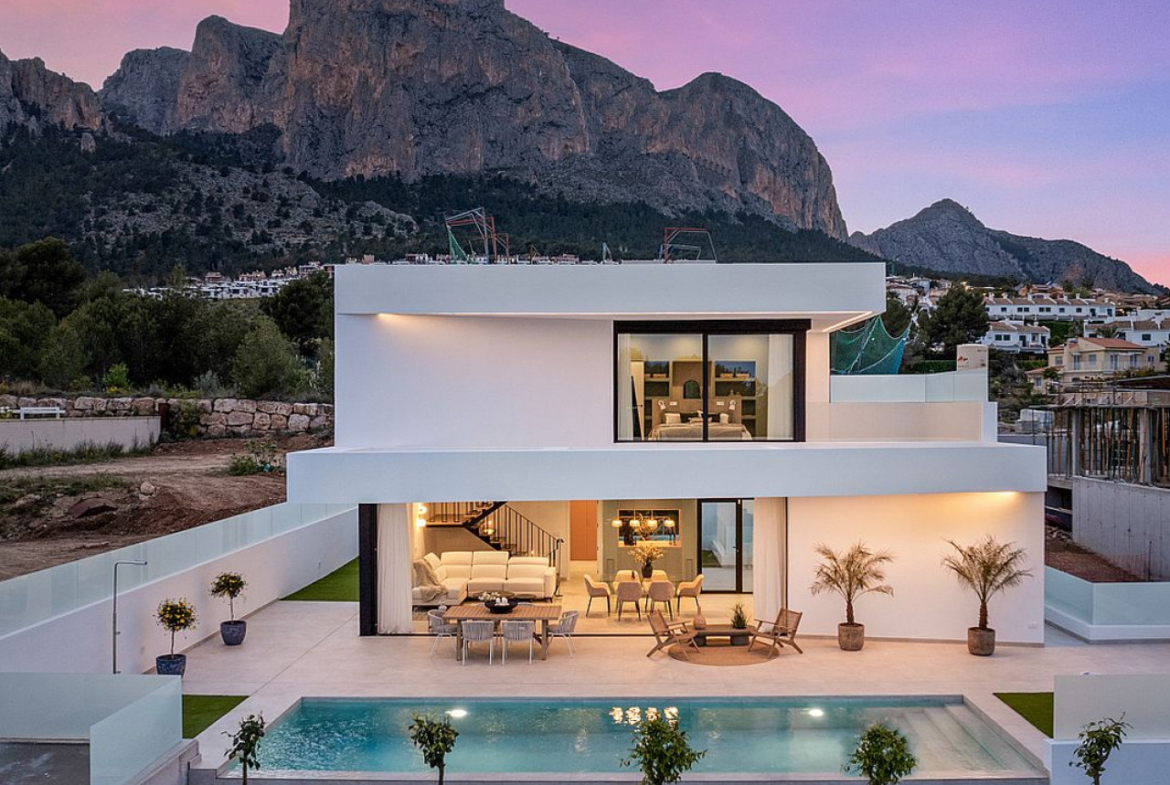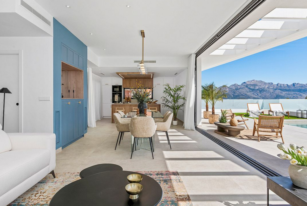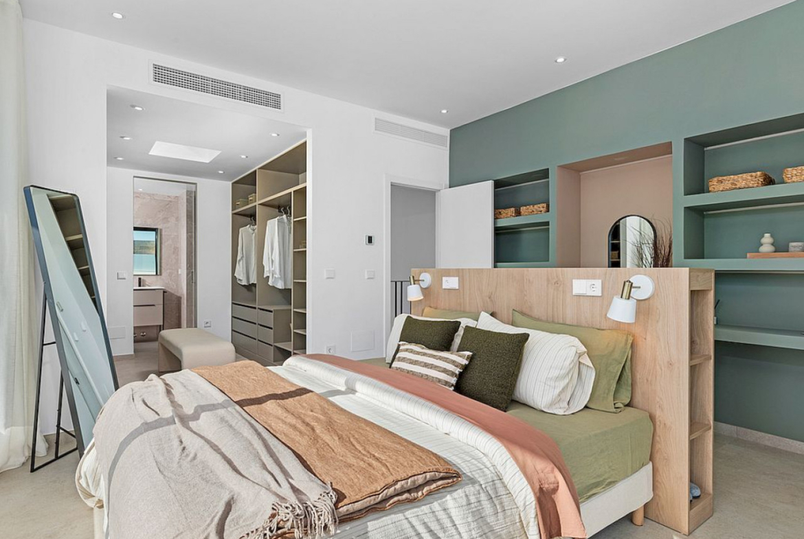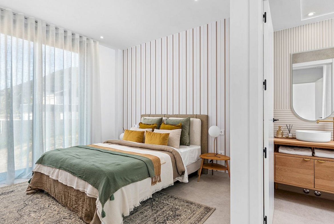 Vilą sudaro trys dviviečiai miegamieji (visi su įmontuotomis spintomis ir drabužine pagrindiniame miegamajame), trys šeimos vonios kambariai, atskiras tualetas, visiškai įrengta moderni virtuvė (įskaitant buitines prekes) ir didelis atviro plano holas / valgomojo zona, iš kurios atsiveria privatus baseinas ir architektūrinis sodas, iš kurio atsiveria kalnų ir Viduržemio jūros panorama.