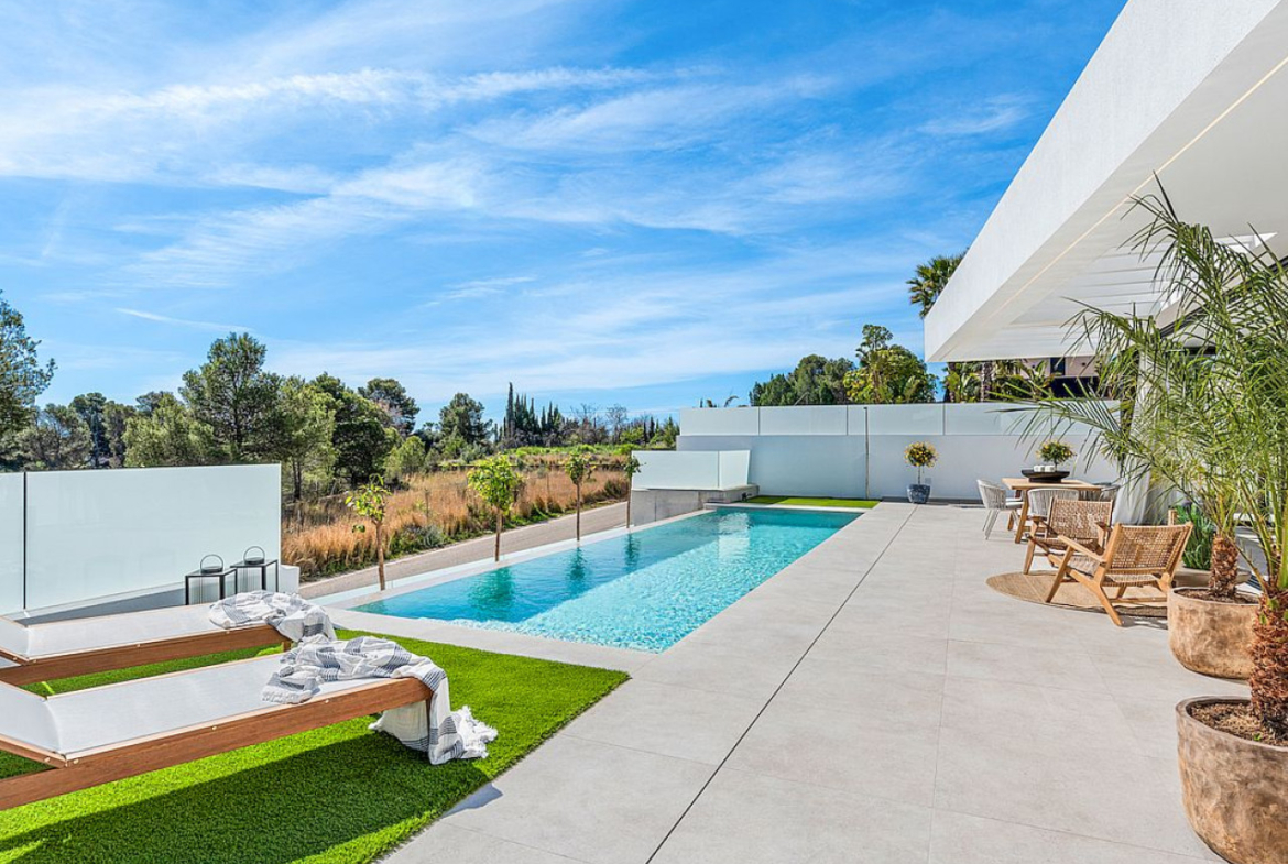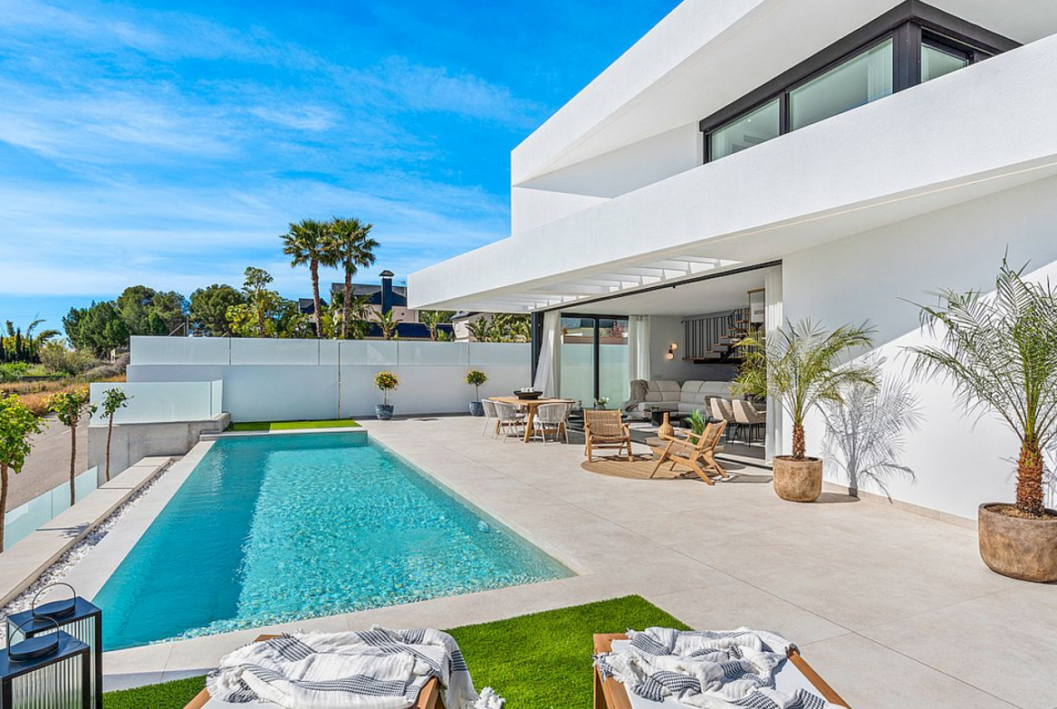 Šioje prabangioje modernioje viloje suprojektuota daug šviesių ir atvirų erdvių, su rūsiu, garažu, begalybės baseinu, erdviomis terasomis ir sutvarkytu sodu, kad Viduržemio jūros klimatu galėsite mėgautis ištisus metus.