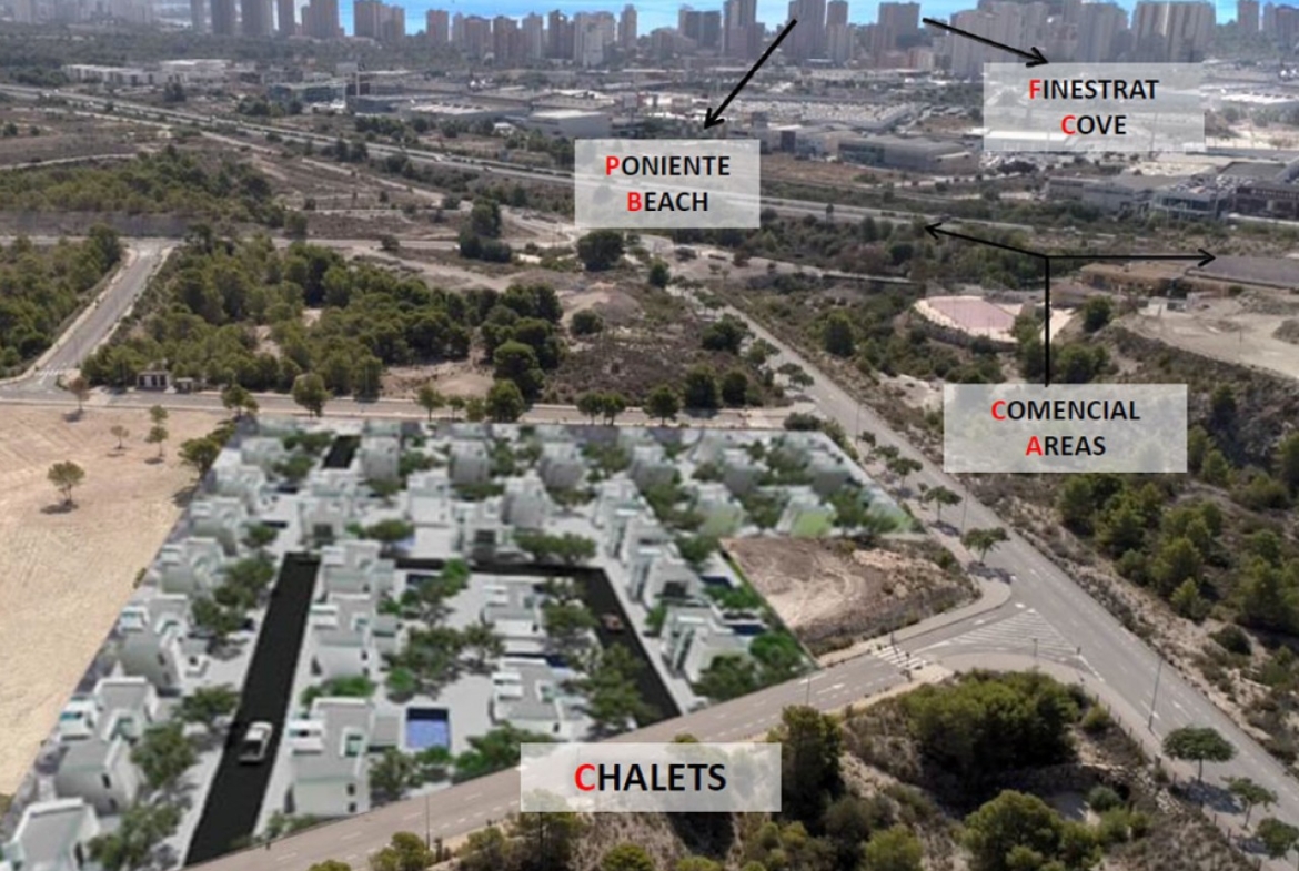 Vilos yra vos keturios minutės kelio automobiliu iki Finestrat įlankos, penkios minutės iki Poniente paplūdimio, dvi minutės iki Finestrat La Marina parduotuvių zonų ir netoli Benidormo miesto.