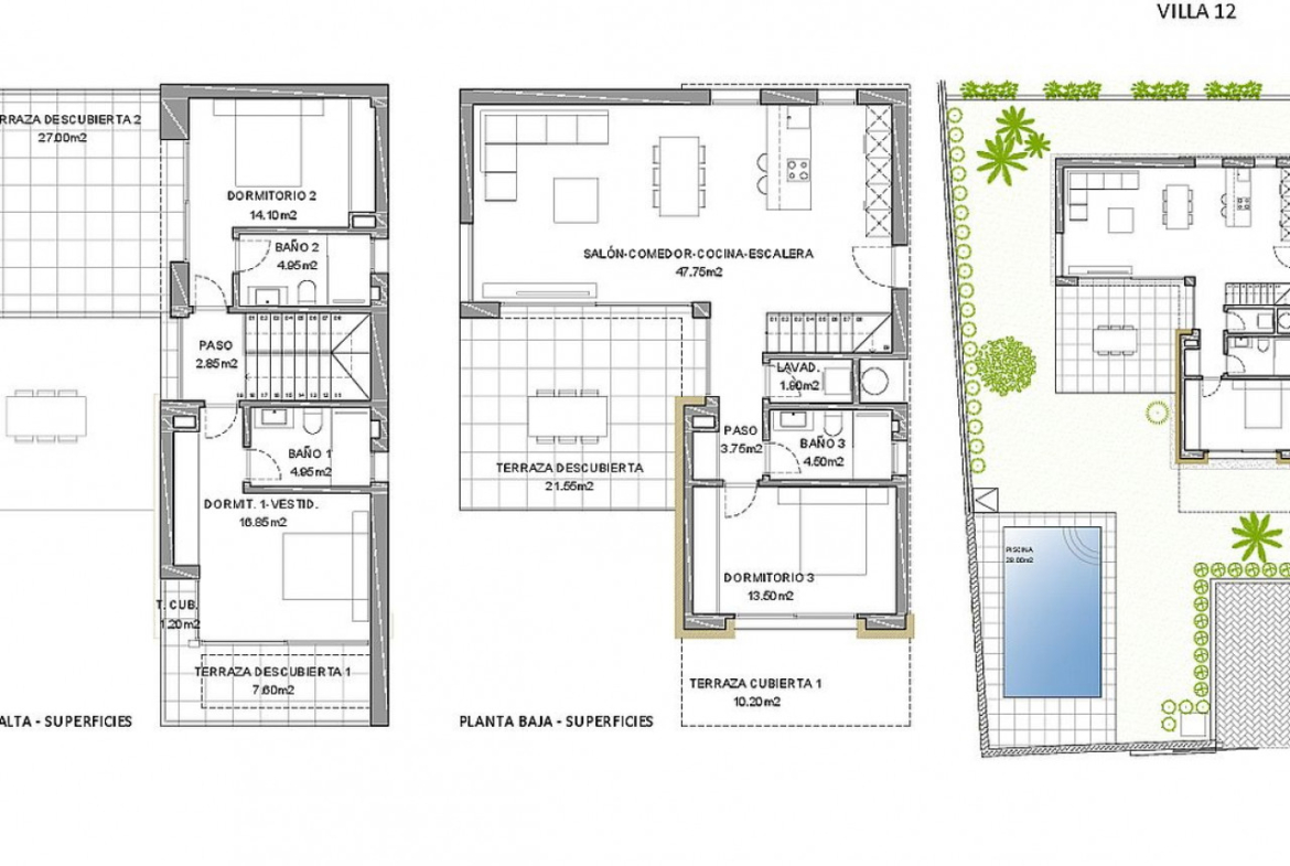 Viršutiniame aukšte yra pagrindinis miegamasis su vonios kambariu ir privačia terasa, iš kurios kiekvieną dieną galėsite stebėti nuostabius saulėtekius ir gėrėtis nuostabiais panoraminiais vaizdais. Be to, yra dar vienas miegamasis ir vonios kambarys. Kai kuriuose vilose taip pat yra erdvus rūsys su terasa ir natūralia šviesa.