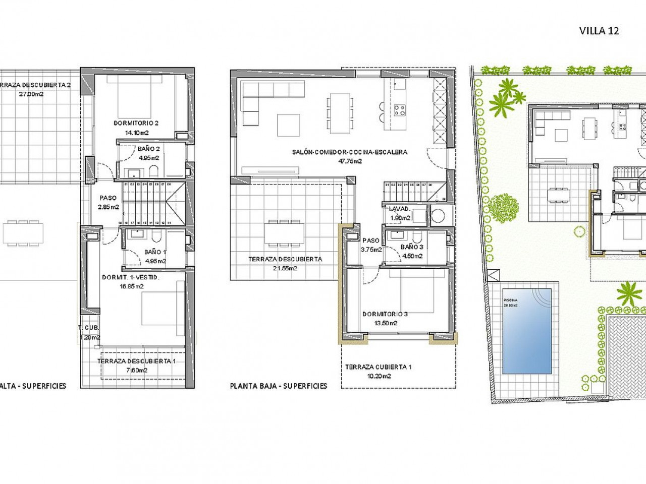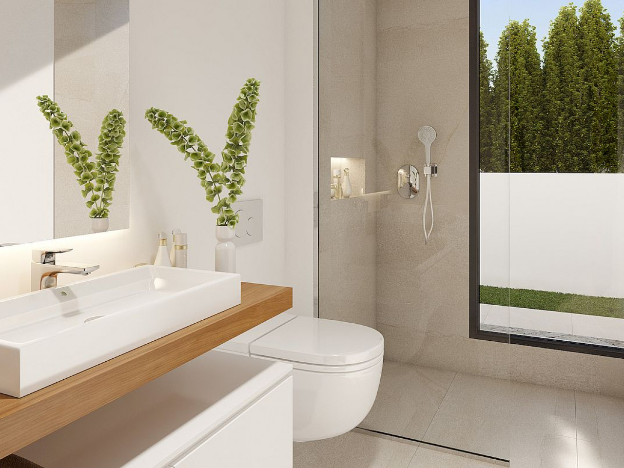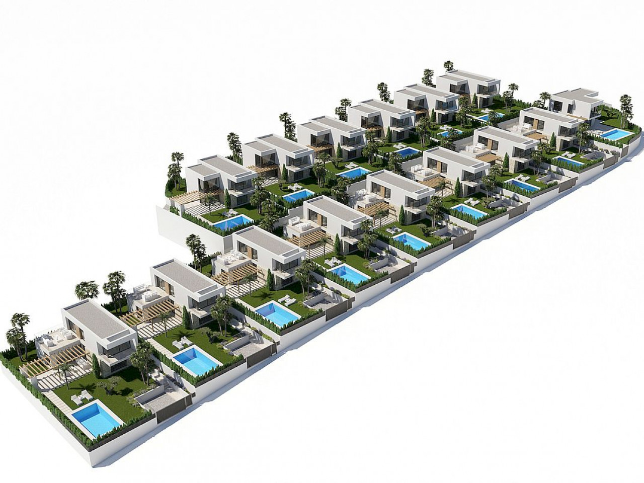 Vilos pastatytos 450–580 m² sklypuose ir išsidėsčiusios per du aukštus. Išorė skirta atsipalaiduoti ir pramogauti, čia yra baseinas, didelis sodas su daug vietos pasėdėti su draugais ar šeima bei vieta automobiliui.