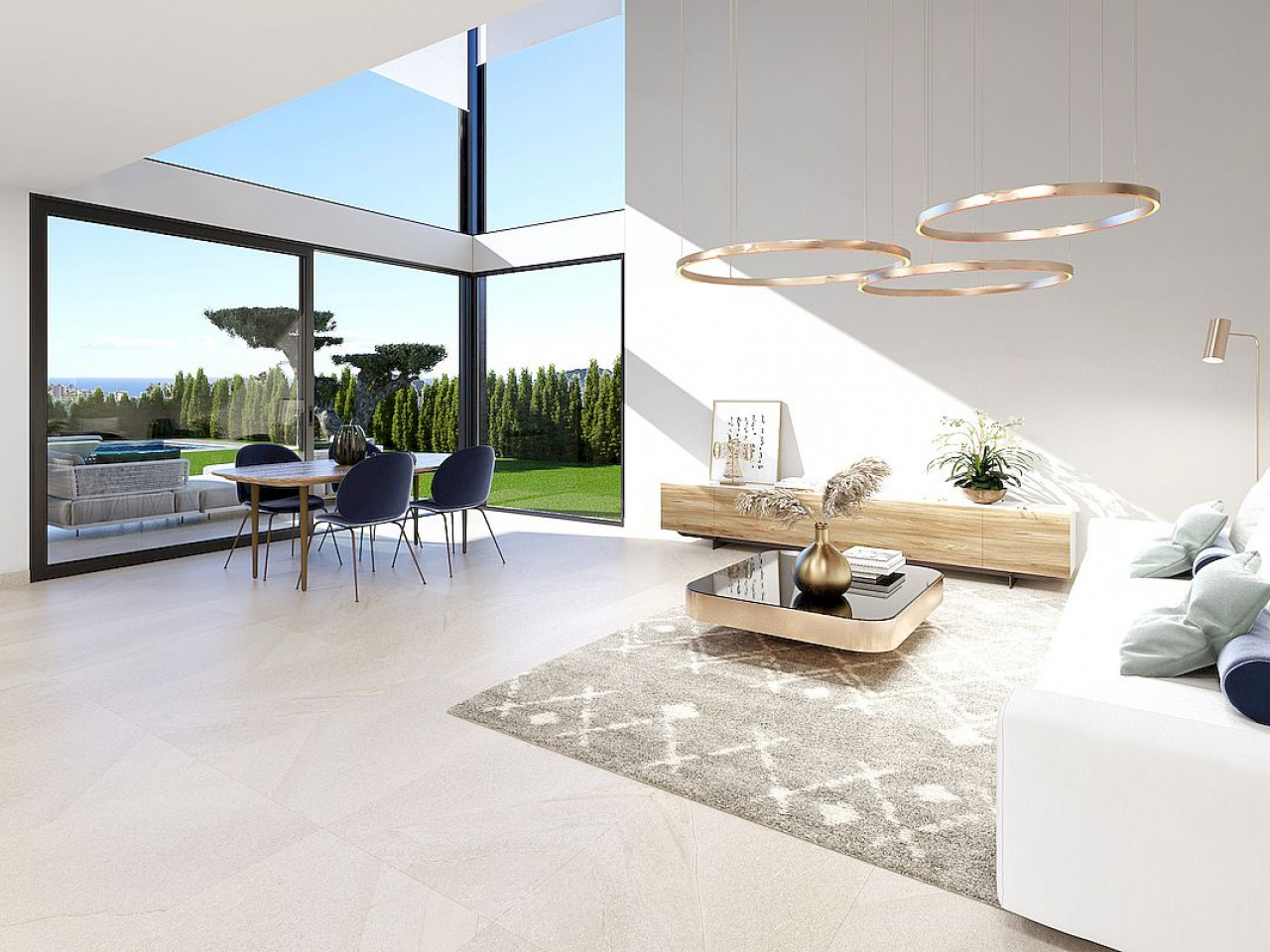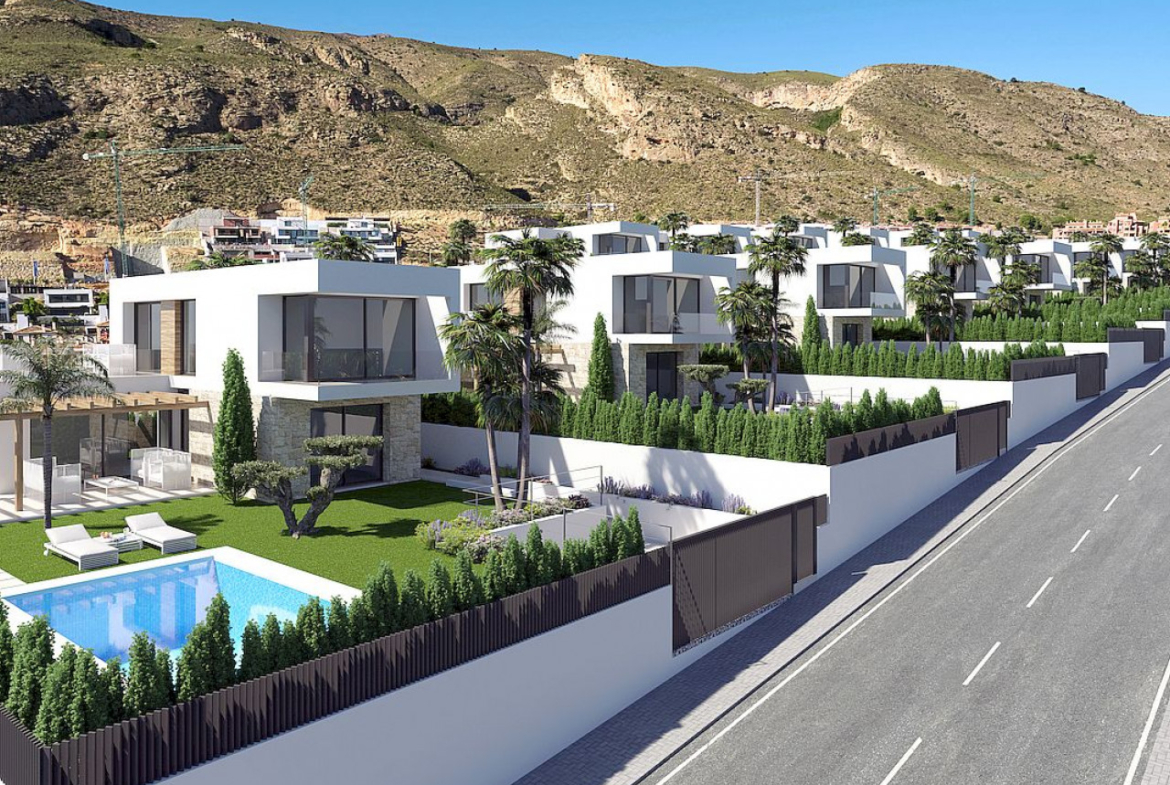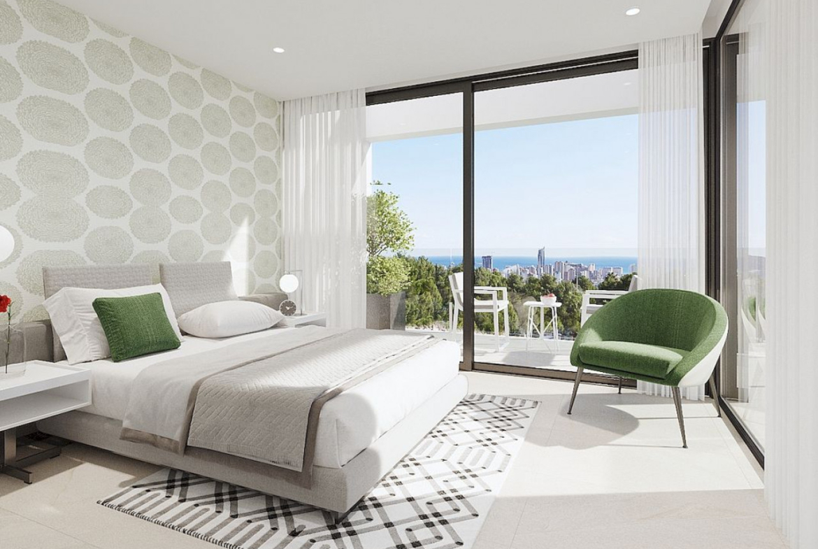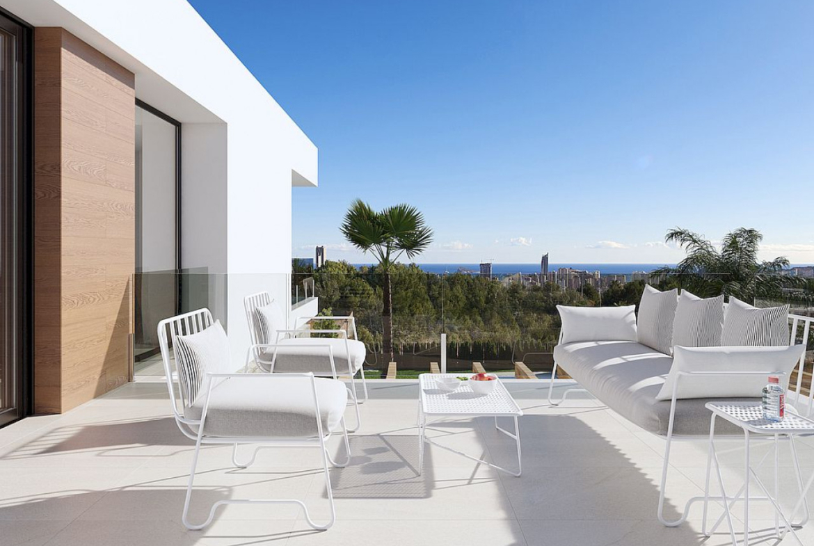 „Seaview 5“ – 3 miegamųjų ir 3 vonios kambarių vilų kompleksas Sierra Cortina urbanizacijoje, Finestrate. Ramybės oazė tarp jūros ir kalnų, bet jei trokštate miesto šurmulio, Benidorme būsite per 10 minučių. Iš visų vilų atsiveria Benidormo pakrantės panorama.
