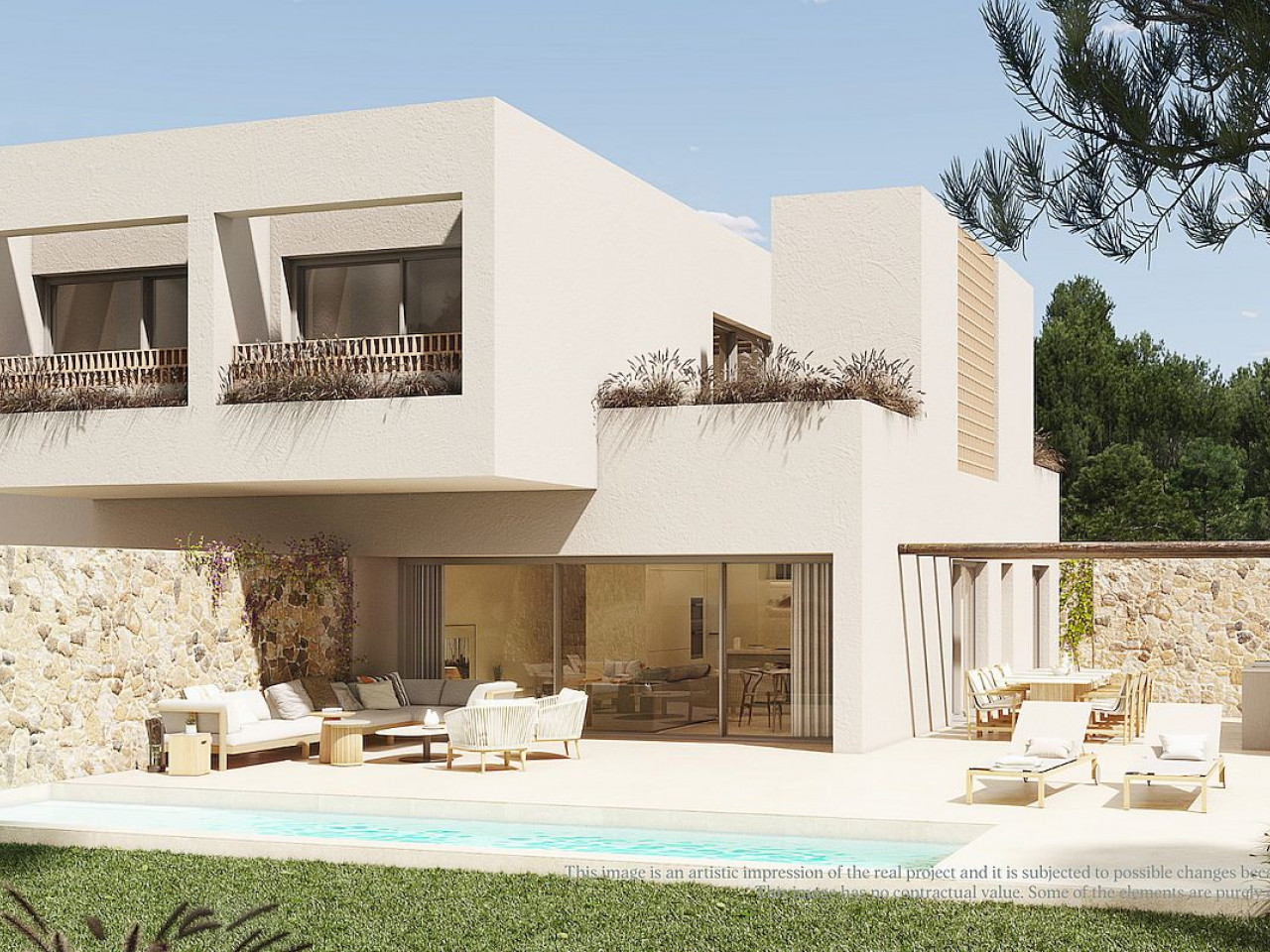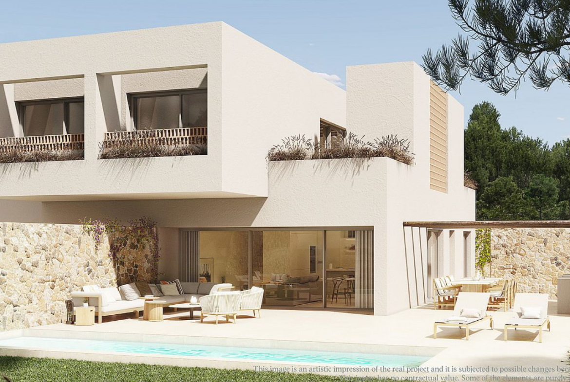 Visi jie įrengti erdviuose sklypuose nuo 500 iki daugiau nei 1500 m², kurie siūlo daugybę galimybių su didele terasa ir skulptūriniu keturkampiu bekraščiu baseinu. Jūsų privatumui yra puikus sodas su brandžiais augalais ir medžiais.