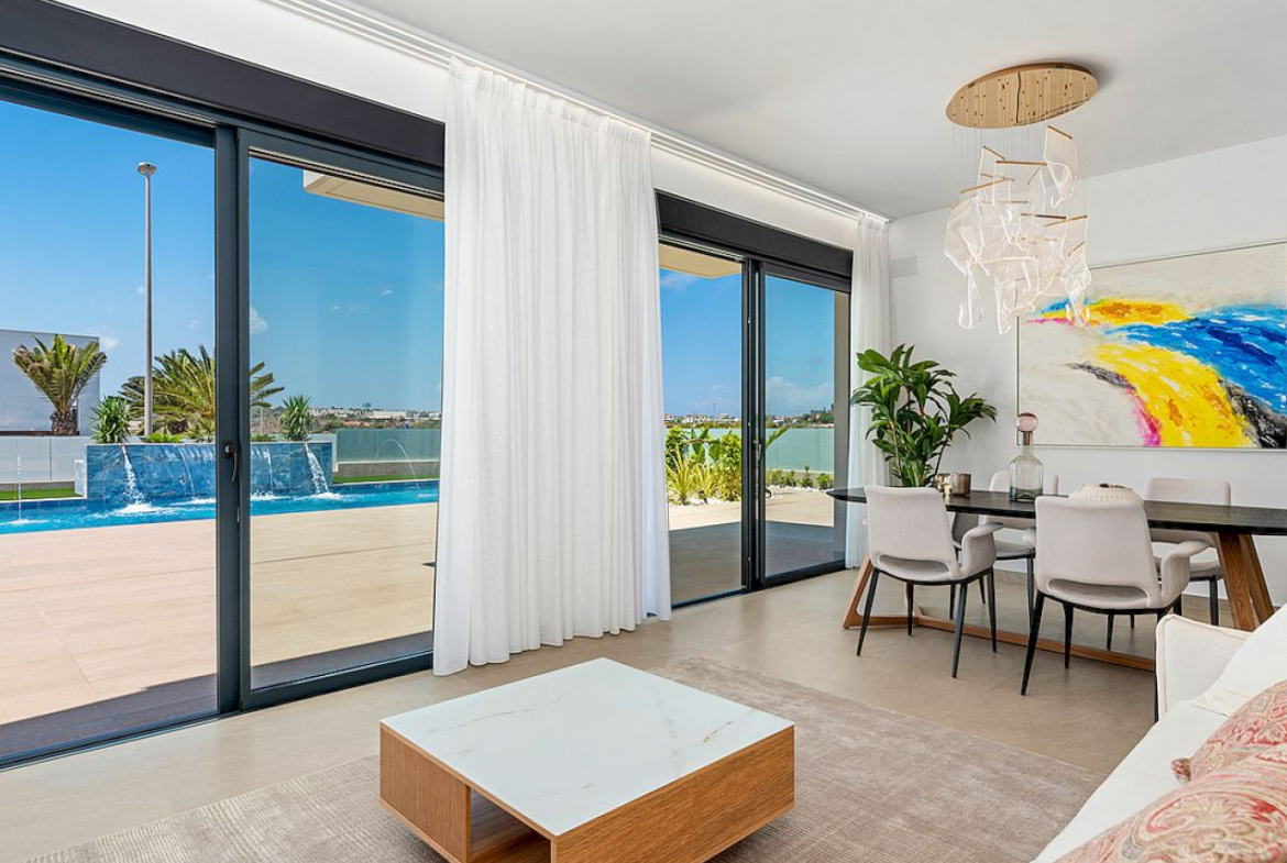 Vilas sudaro du dviviečiai miegamieji (su įmontuotomis spintomis), du vonios kambariai, visiškai įrengta moderni virtuvė (su pusryčių baru ir buitine technika) ir erdvi atviro plano svetainė / valgomasis, vedantis į privatų sodą su lauko valgomojo zona ir baseinas, iš kurio atsiveria vaizdai į Cabo Roig ir Campoamor paplūdimius.