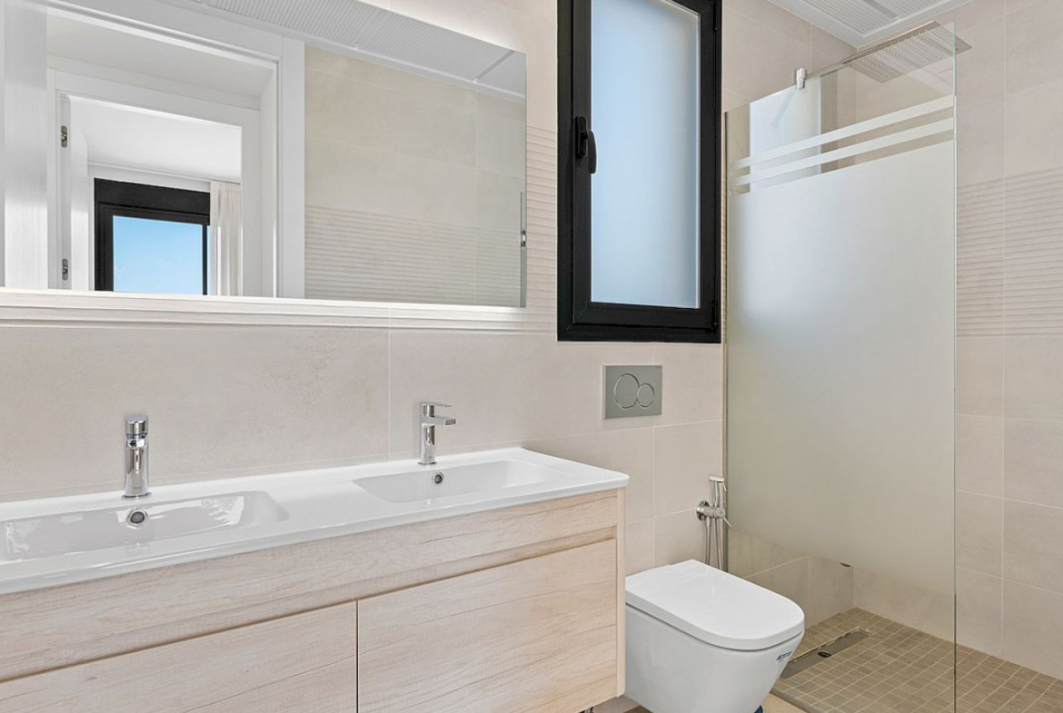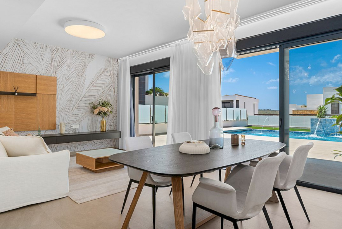 Vilas sudaro du dviviečiai miegamieji (su įmontuotomis spintomis), du vonios kambariai, visiškai įrengta moderni virtuvė (su pusryčių baru ir buitine technika) ir erdvi atviro plano svetainė / valgomasis, vedantis į privatų sodą su lauko valgomojo zona ir baseinas, iš kurio atsiveria vaizdai į Cabo Roig ir Campoamor paplūdimius.