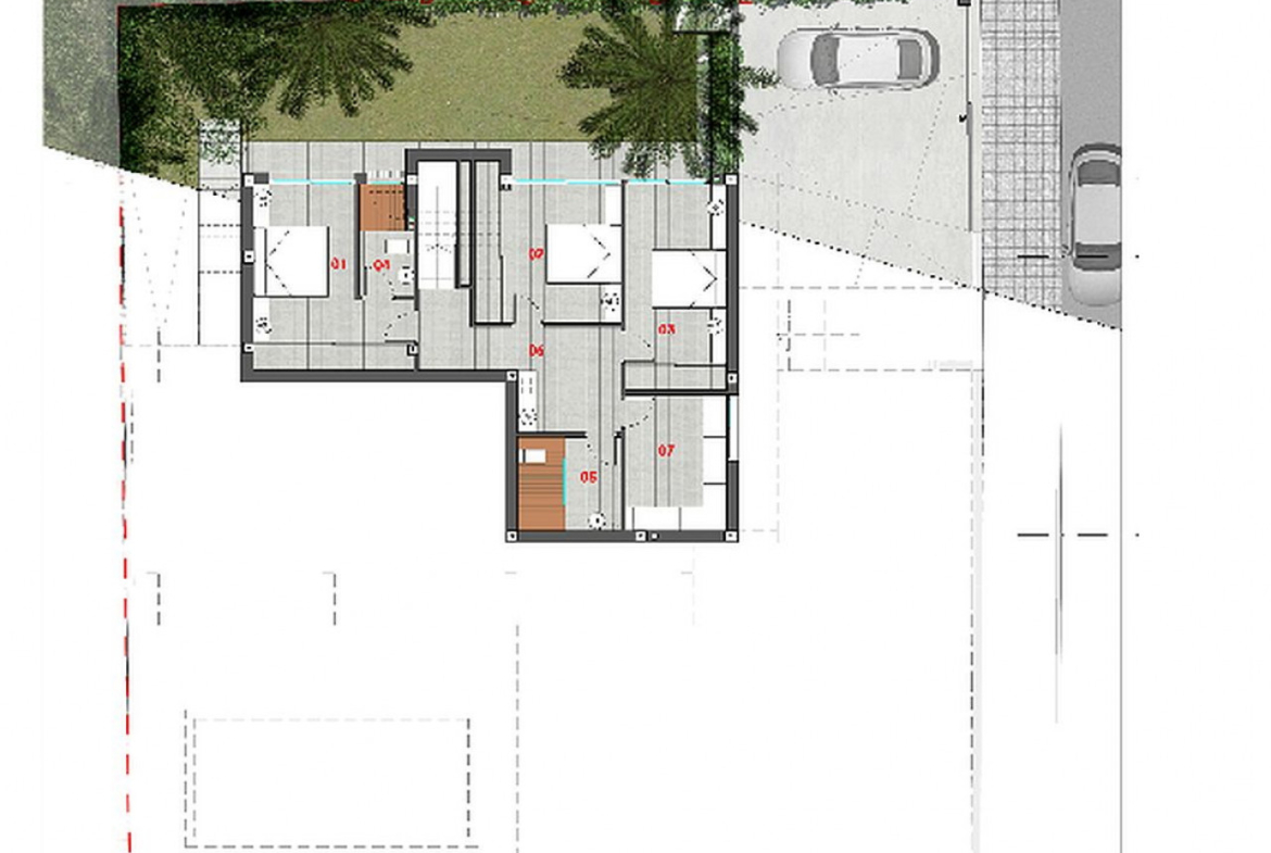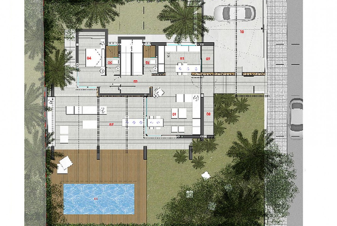 Iš viso beveik 100 m² erdvė su baseinu ir Viduržemio jūros stiliaus sodu, iš kur galima tiesiogiai patekti iš dviejų aukštų pastatą ir maksimaliai išnaudoti 500 m² sklypą.